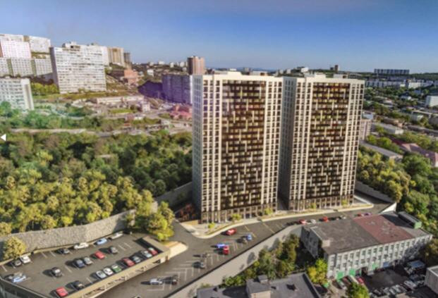 Строительство ЖК "ATMOSFERA" идет по ул. Стрелковая, 18а в 64 микрорайоне города Владивостока.