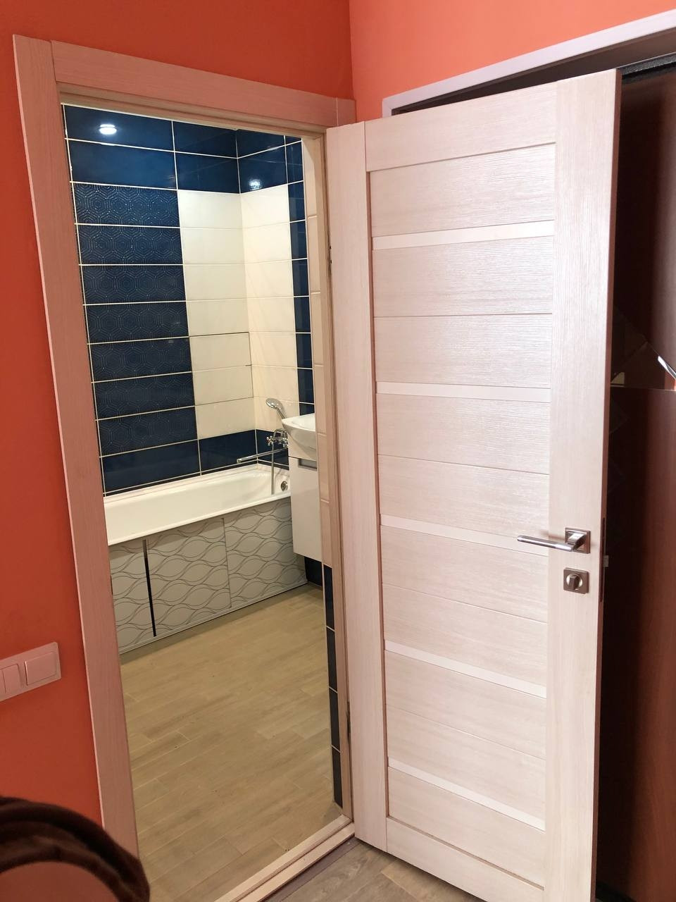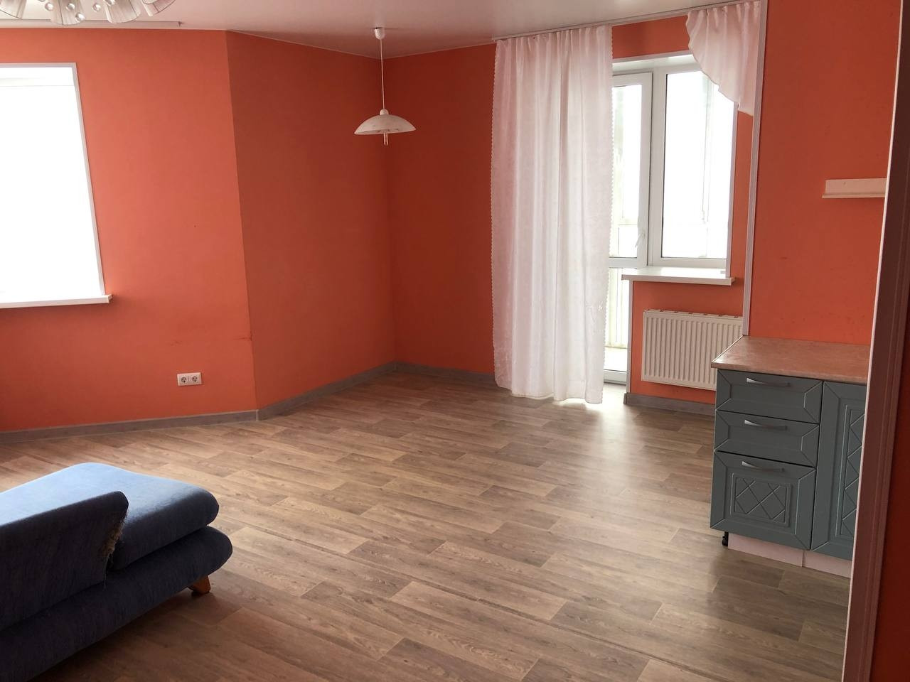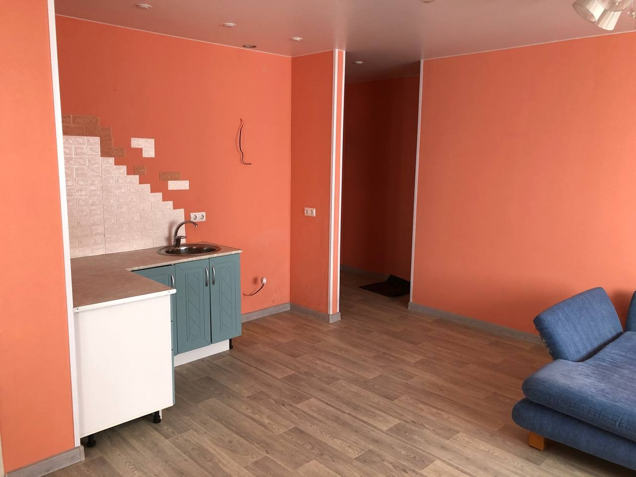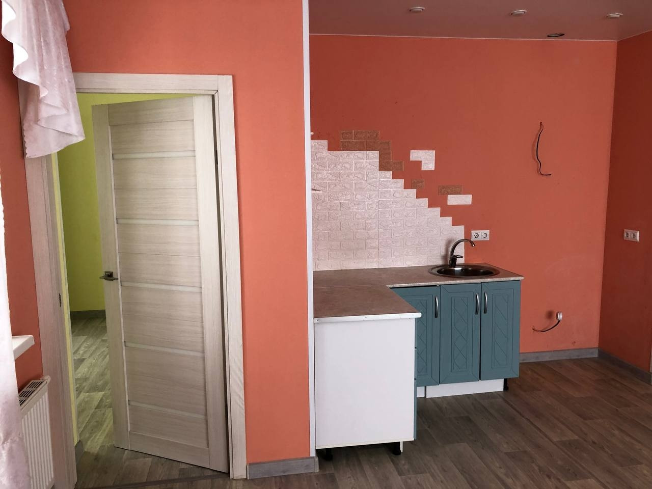 - стены выровнены под маячок, в квартире наливной пол;