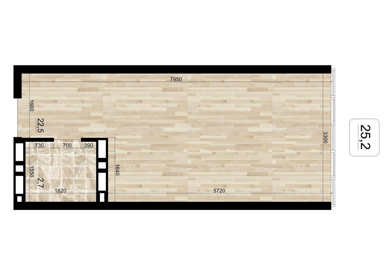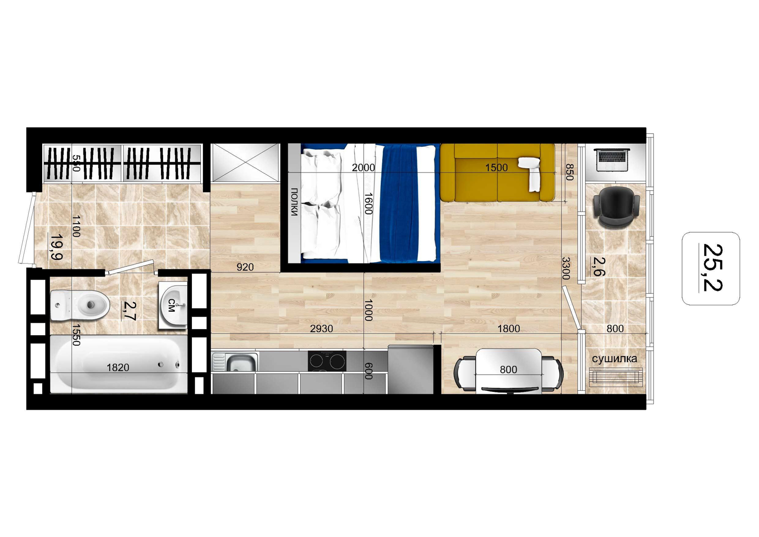 Общая площадь 25.2 м2