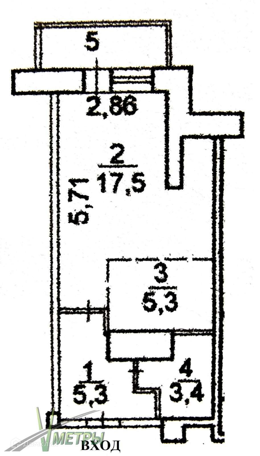 Общая площадь 31.5 м2
