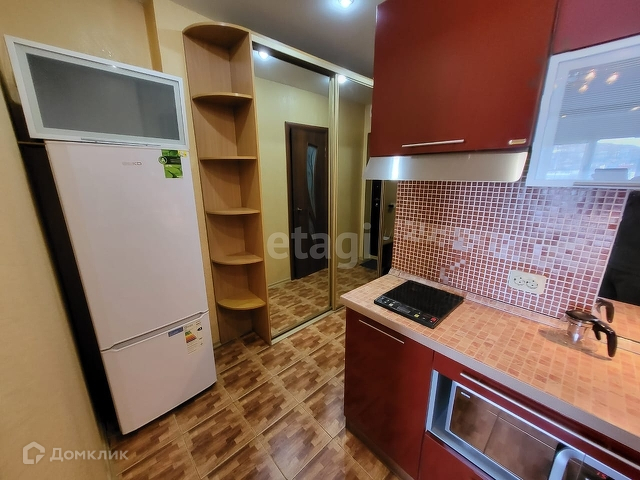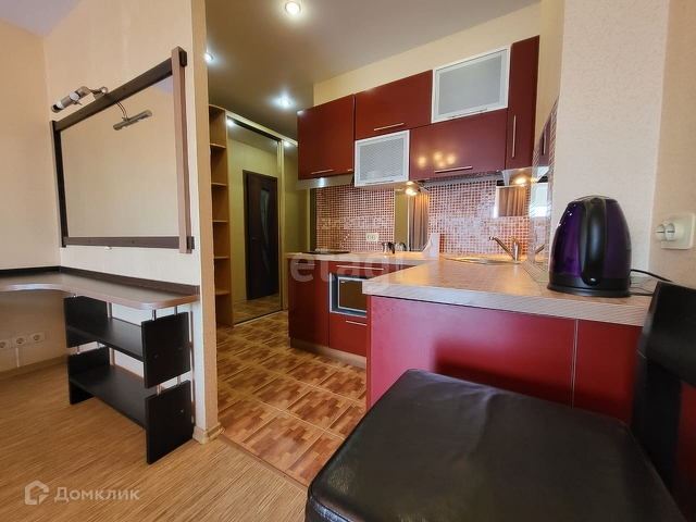 Есть небольшой балкон, что является преимуществом для гостинок - всегда есть место для сушки белья. Квартира полностью укомплектована всем необходимым для проживания: красивый кухонный гарнитур, электроплита, холодильник, чайник, микроволновая печь.
