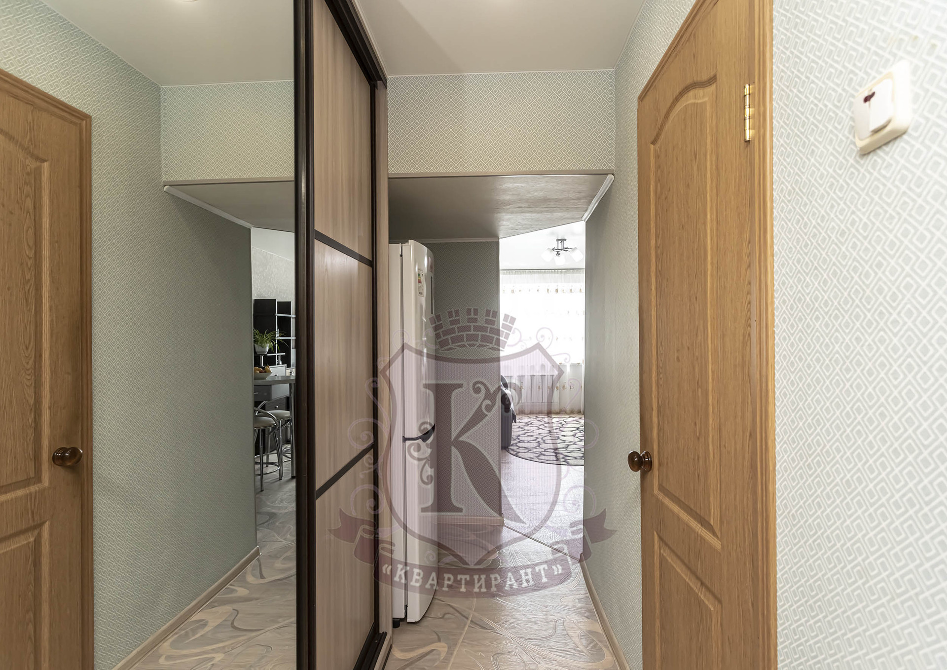 - В прихожей установлен шкаф-купе.