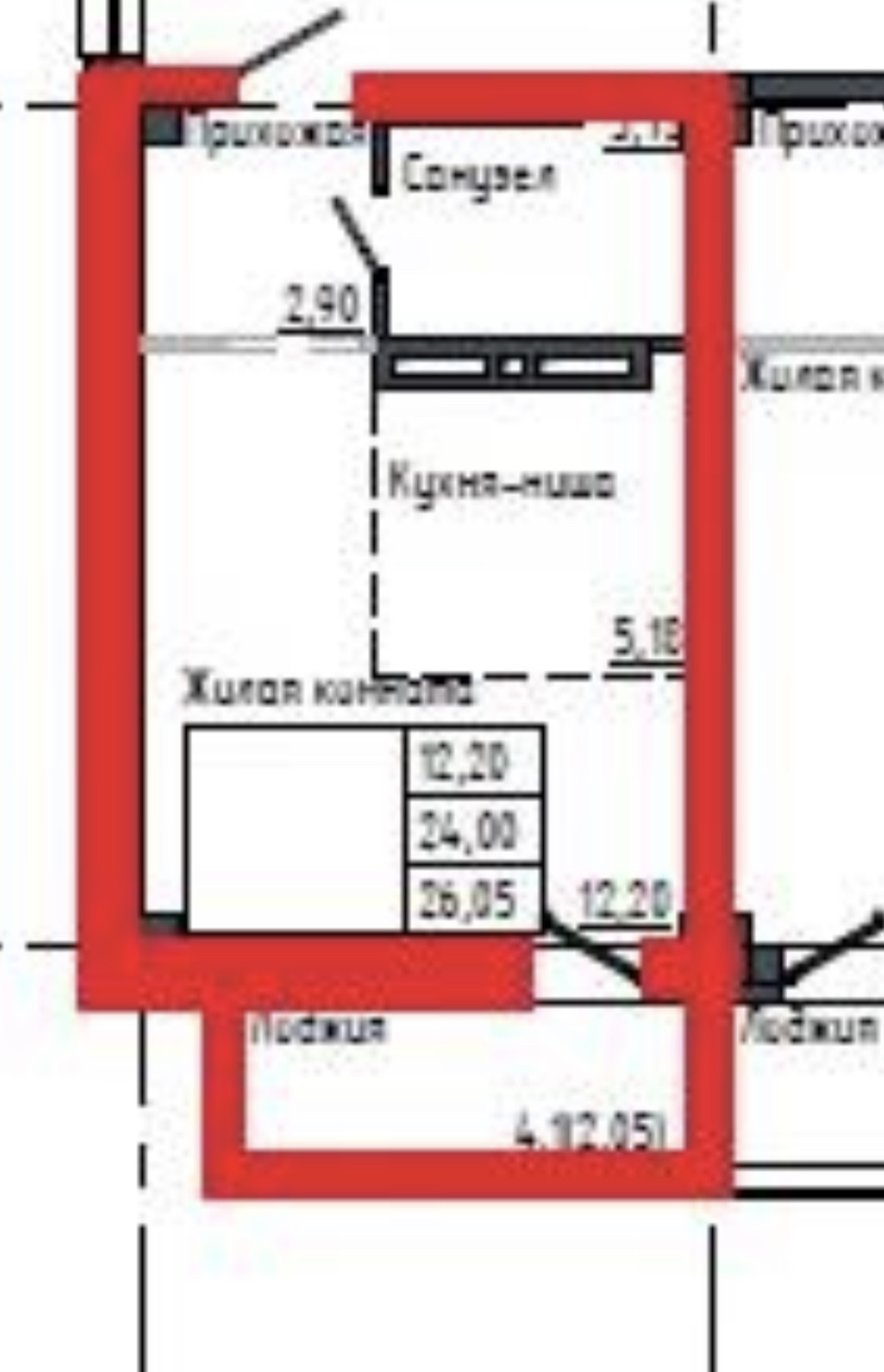 Общая площадь 26.05 м2