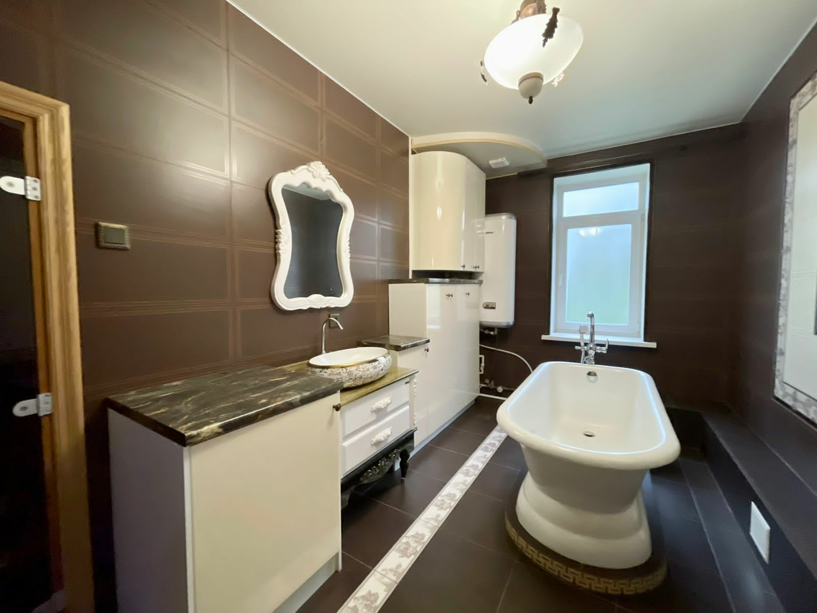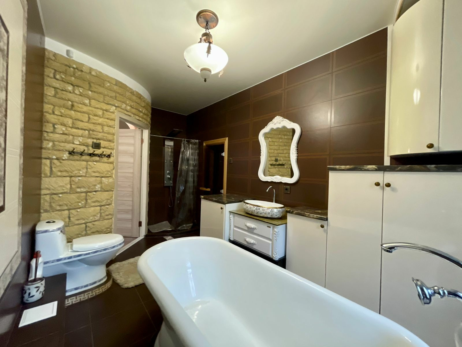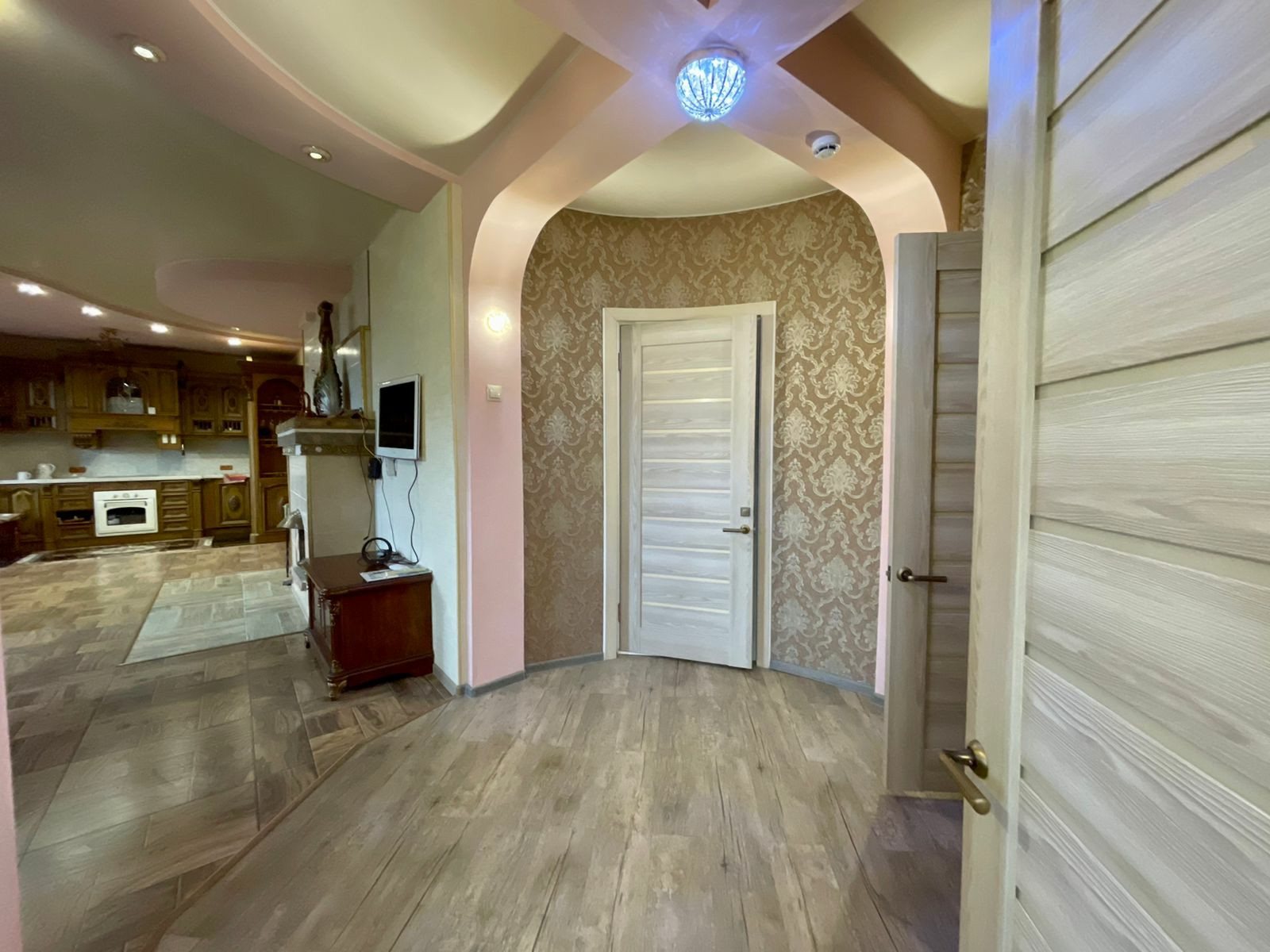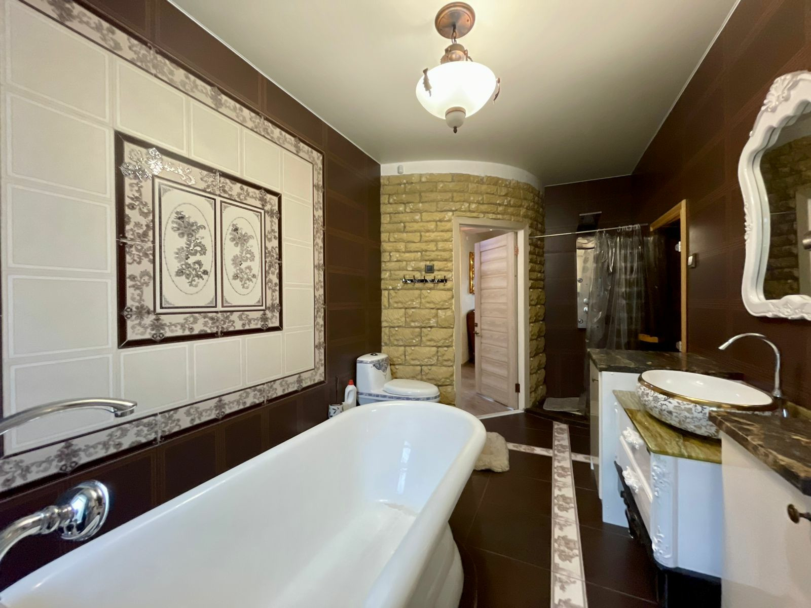 Оказавшись внутри этой недвижимости (общ. площадь 150 м2, а высота потолков 3 м), первое что бросается в глаза это качественный ремонт из дорогостоящих и современных материалов с применением эстетических элементов декора, а высокие потолки (высота 3м) дарят ощущение пространства и свободы, логически продуманная планировка комнат с великолепным индивидуальным дизайном дают осознания счастья и чувства удовлетворённости. Благодаря сауне и восхитительной ванной комнаты с роскошным умывальником и ванны из искусственного камня Вы каждый день можете побаловать себя, расслабившись принимая её. А после, вернувшись в просторный зал совмещенный с кухонной зоной, разжечь камин чтоб провести этот уютный вечер за чашечкой горячего чая или бокала вина и получить удовольствие наблюдая за мерцанием и завораживающей игрой пламени.