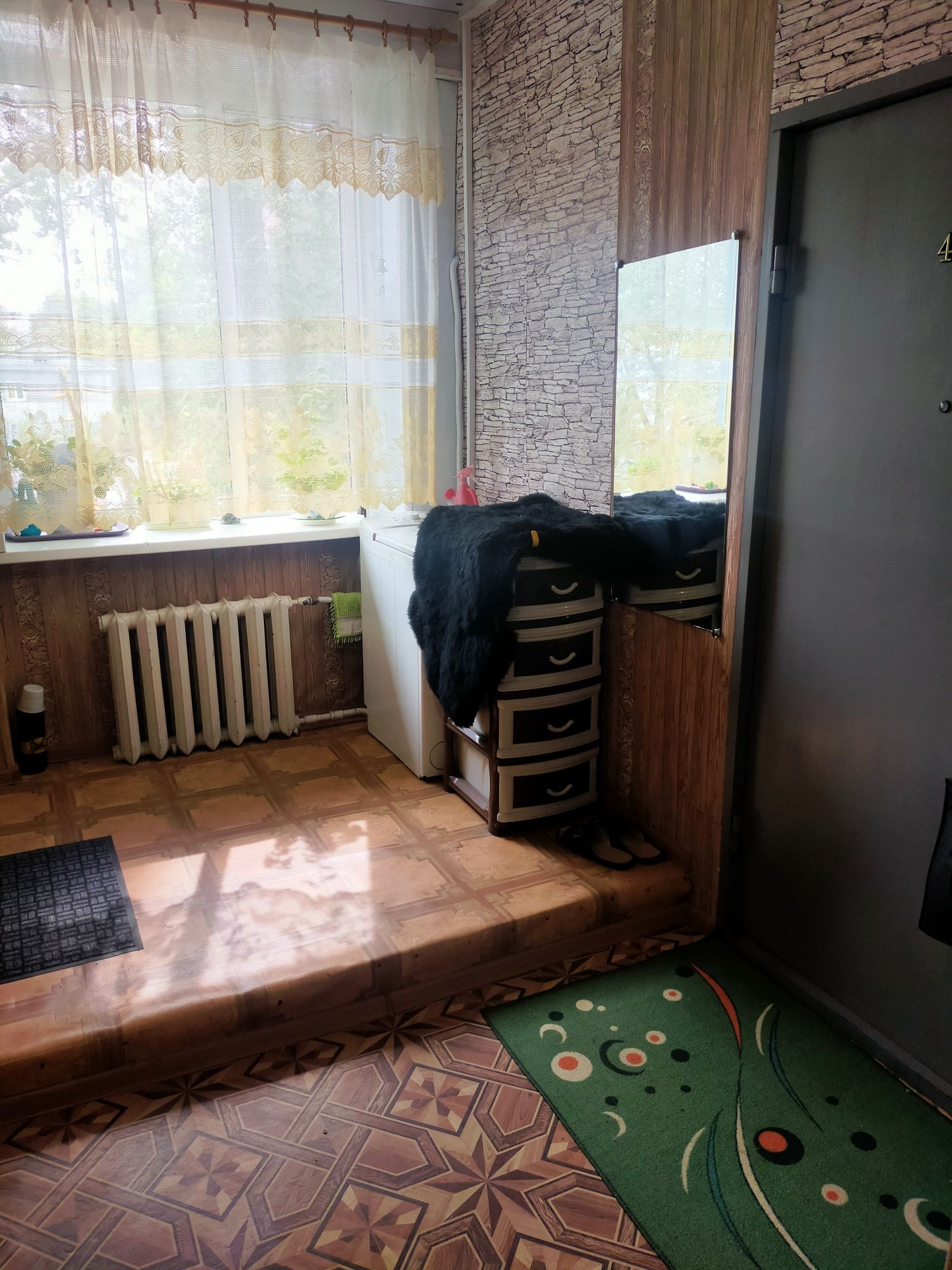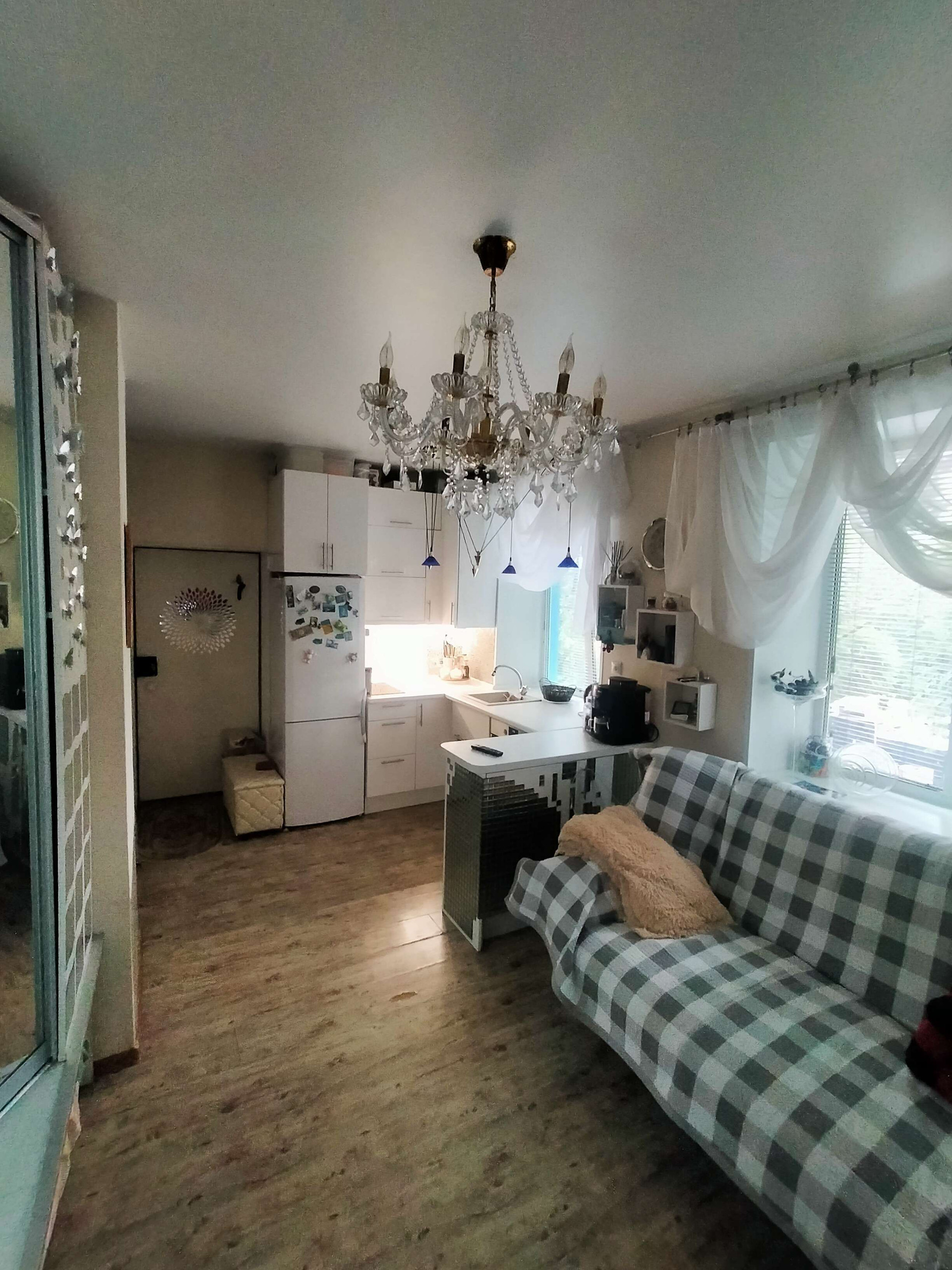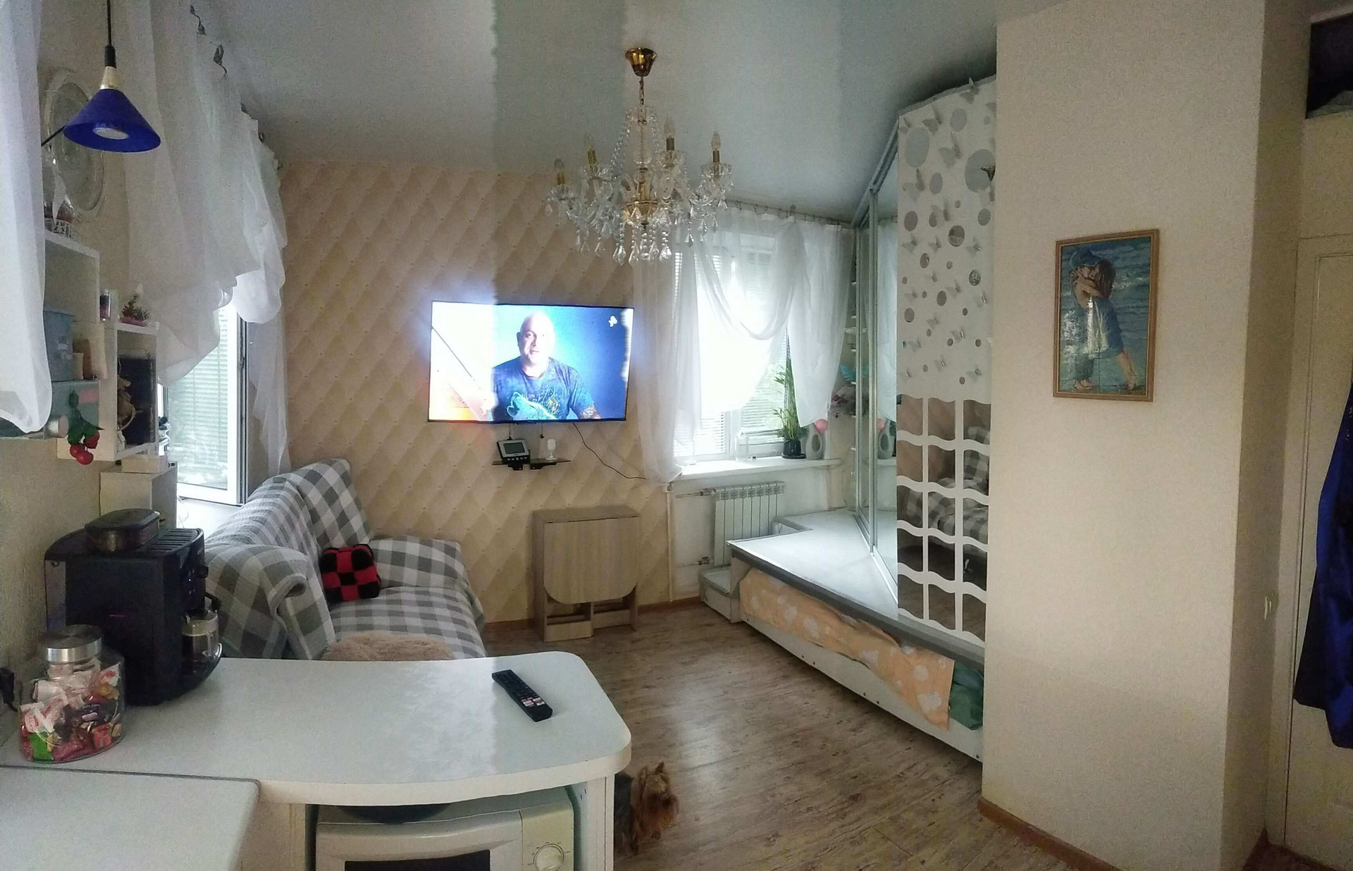 квартира студия, тёплая, светлая ( 3 окна). встроенная мебель. санузел совмещённый. теплый пол в квартире и санузле.  общая дверь на две квартиры . хорошие соседи. нет проблем с парковкой. дом после капремонта крыши, фасада и лестничных пролетов. остаётся вся бытовая техника . машинка с сушкой, посудомойка,холодильник,духовка, индукционка.