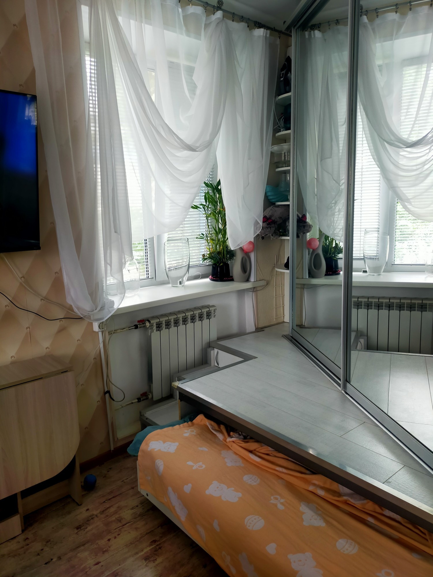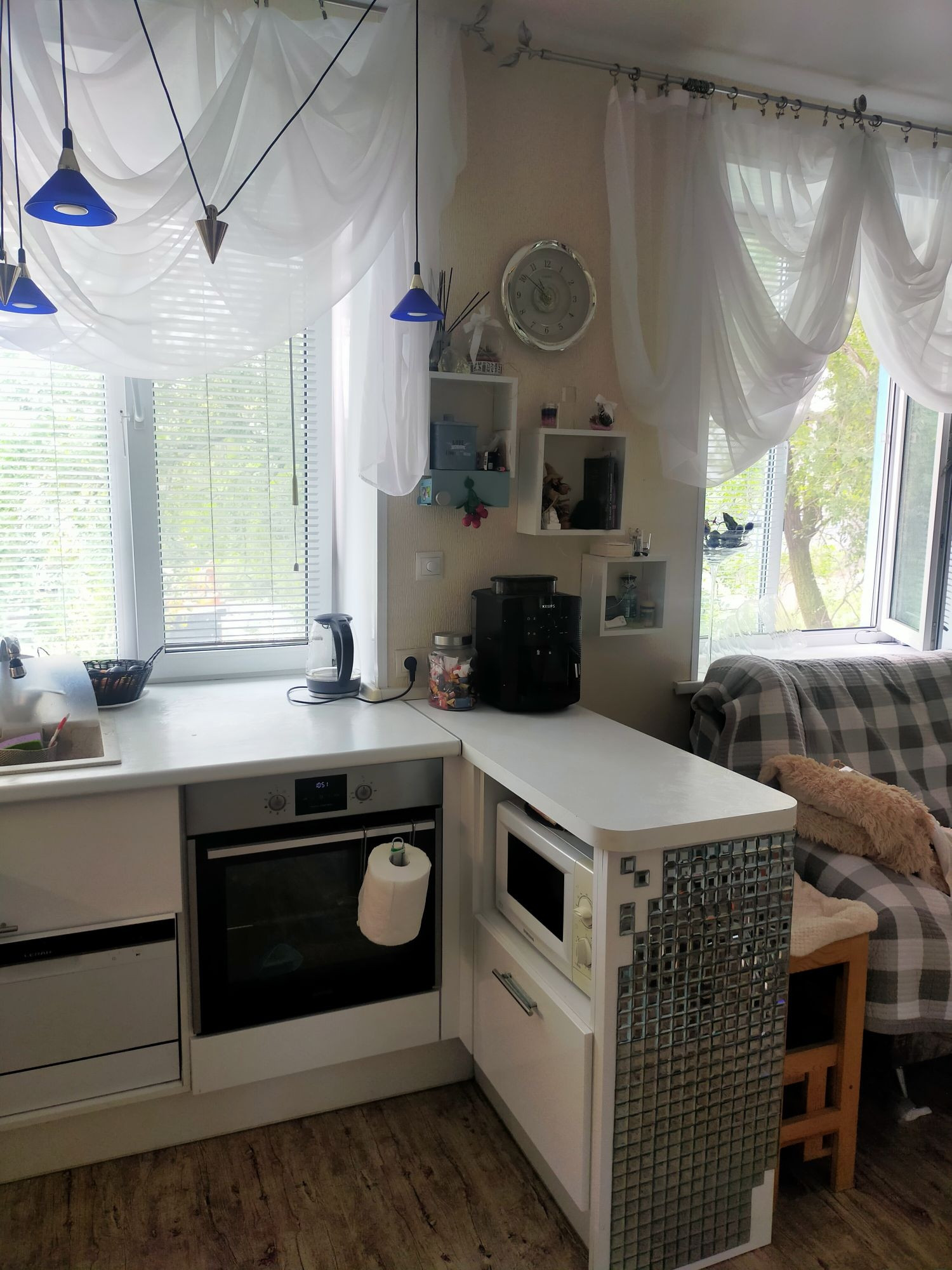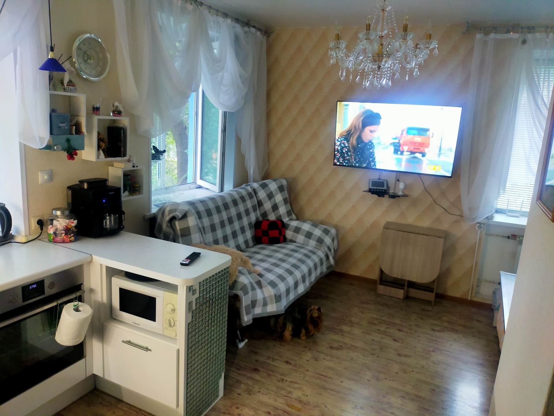 квартира студия, тёплая, светлая ( 3 окна). встроенная мебель. санузел совмещённый. теплый пол в квартире и санузле.  общая дверь на две квартиры . хорошие соседи. нет проблем с парковкой. дом после капремонта крыши, фасада и лестничных пролетов. остаётся вся бытовая техника . машинка с сушкой, посудомойка,холодильник,духовка, индукционка.