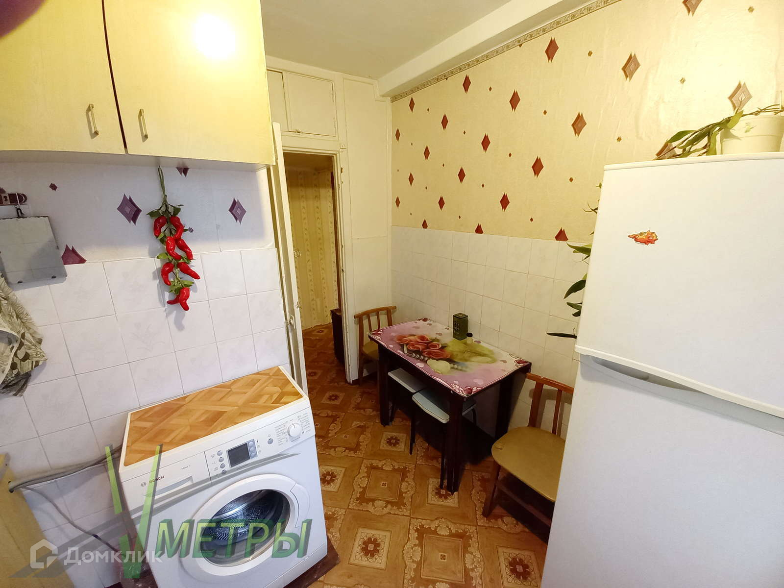 Квартира в жилом состоянии - линолеум, обои, ровные потолки, кафель в санузле, пластиковые окна, новая металлическая дверь. Трубы заменены, стояки подачи воды новые с 1 по 9 этаж. Установлены счетчики на воду.