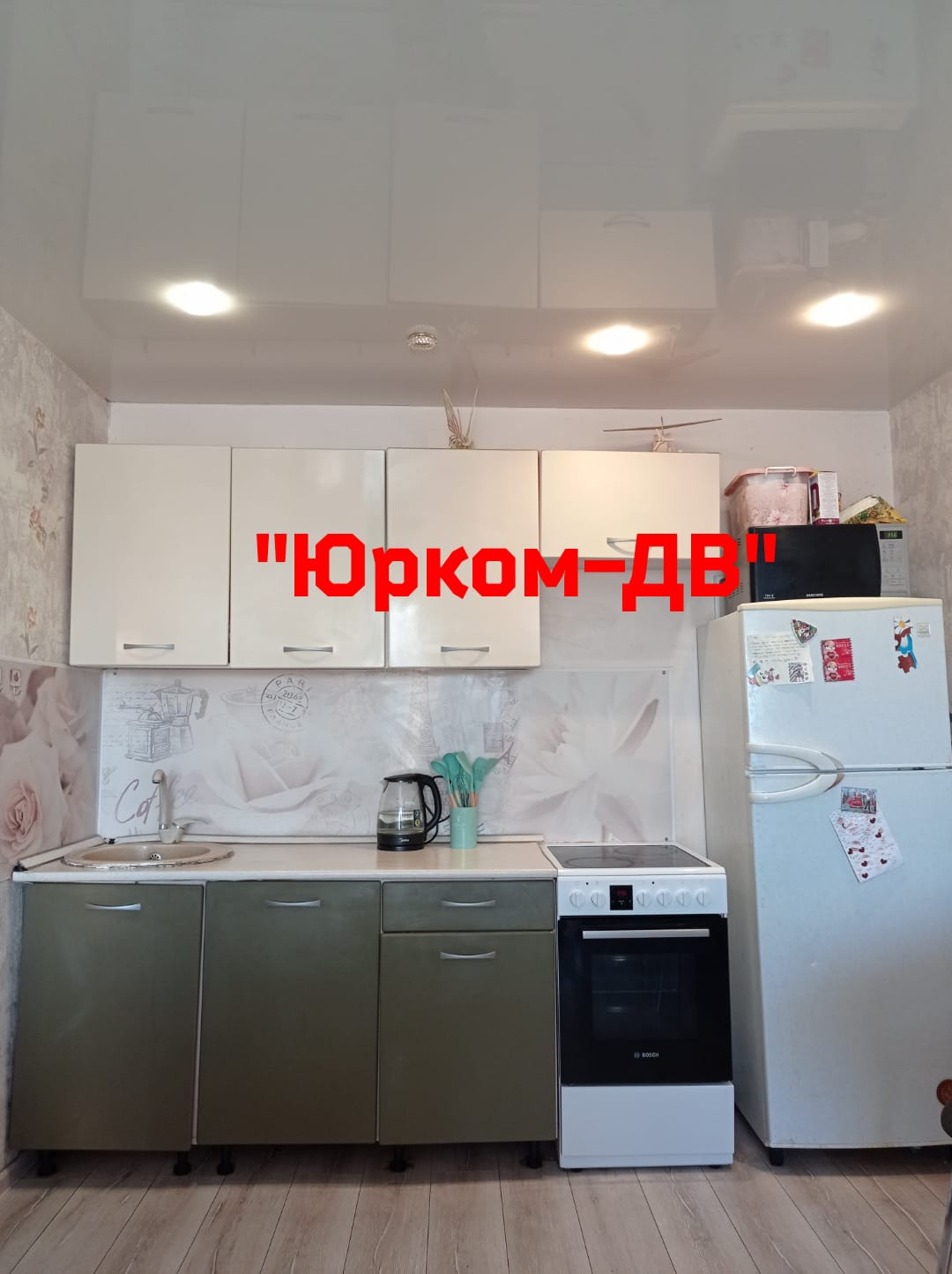 Ламинат, Натяжной потолок, Пластиковые окна, Софиты, Стены выровнены.