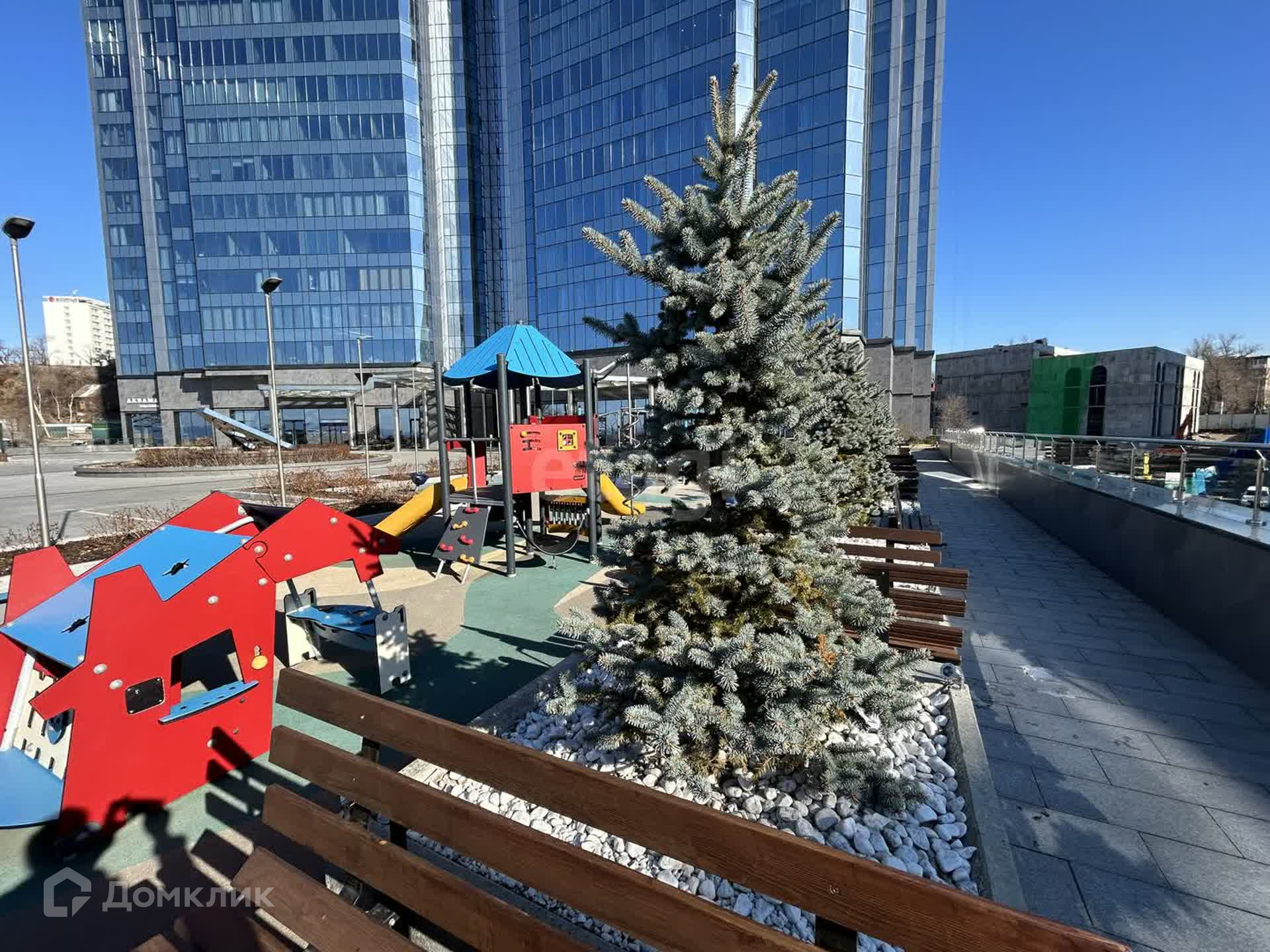 + на крыше комплекса для жильцов и их гостей оборудована современная безопасная видовая площадка с зонами отдыха, с которой открывается уникальный вид на город и Амурский залив, а также две вертолётные площадки (предназначены для экстренной эвакуации жильцов в случае ЧП);