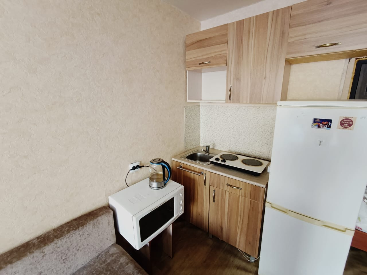 Состояние квартиры позволяет заехать без дополнительных затрат, вся мебель и техника остается новым владельцам. Установлены натяжные потолки, пластиковое окно, на полу линолеум, выделена зона кухни. Подключена стиральная машина, отделан кафелем санузел, установлен бойлер - все сделано для комфортного и удобного проживания.
