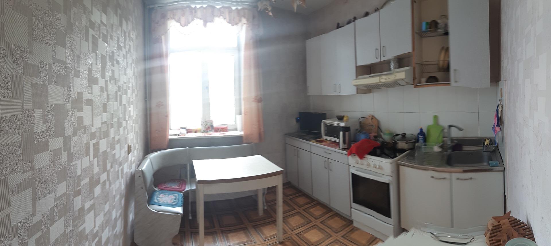 Квартира в хорошем жилом состоянии- очень тёплая , светлая, просторная, уютная, с высокими потолками, раздельными комнатами. Санузел раздельный. Окна пластиковые, дверь металлическая. Толстые капитальные стены, не слышно шума дороги и соседей, восточная сторона, остаётся вся обстановка.