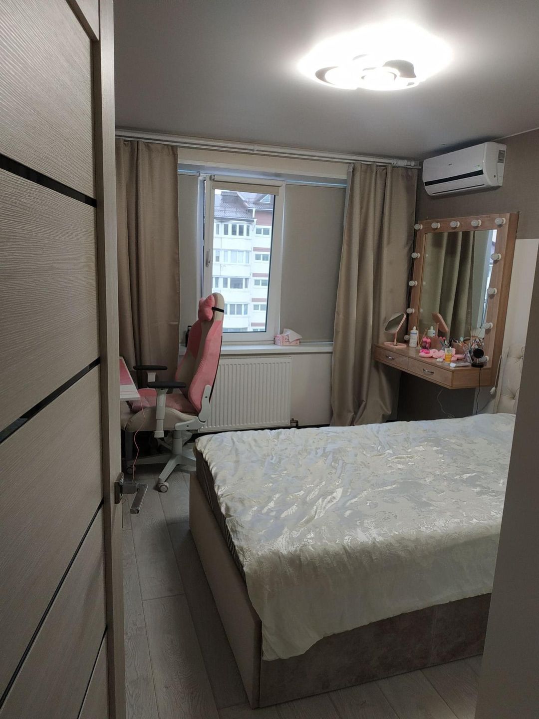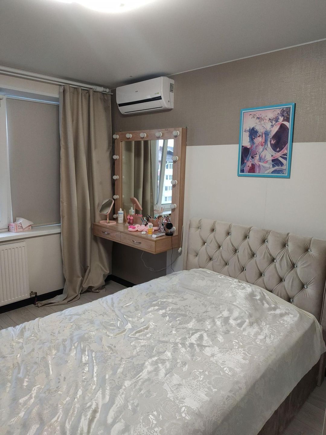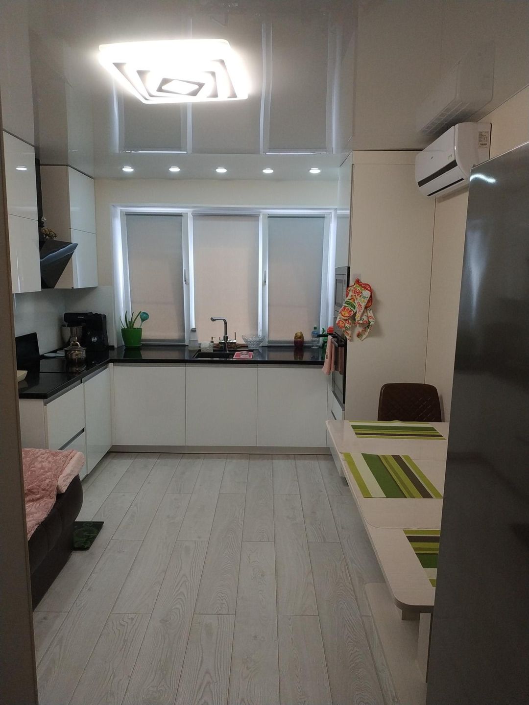 Продается евро трёхкомнатная квартира ,две полноценные комнаты с окнами и кухня - гостиная.Ванна , туалет совмещен,теплый пол прихожая, ванна.В каждой комнате кондиционер.Обмен на таунхаус или коттедж не более 150 кв.м.Рассмотрю   любые варианты