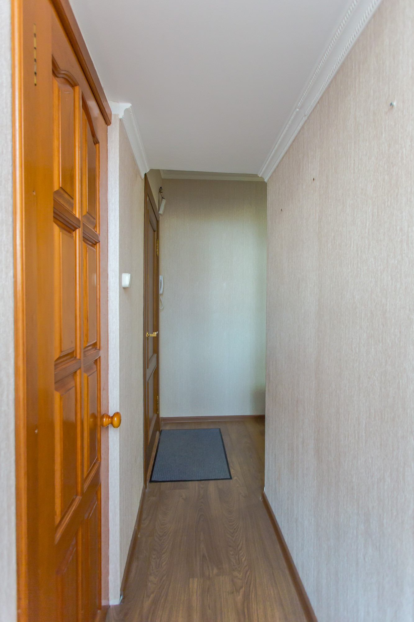 - Стены ровные, поклеены обои