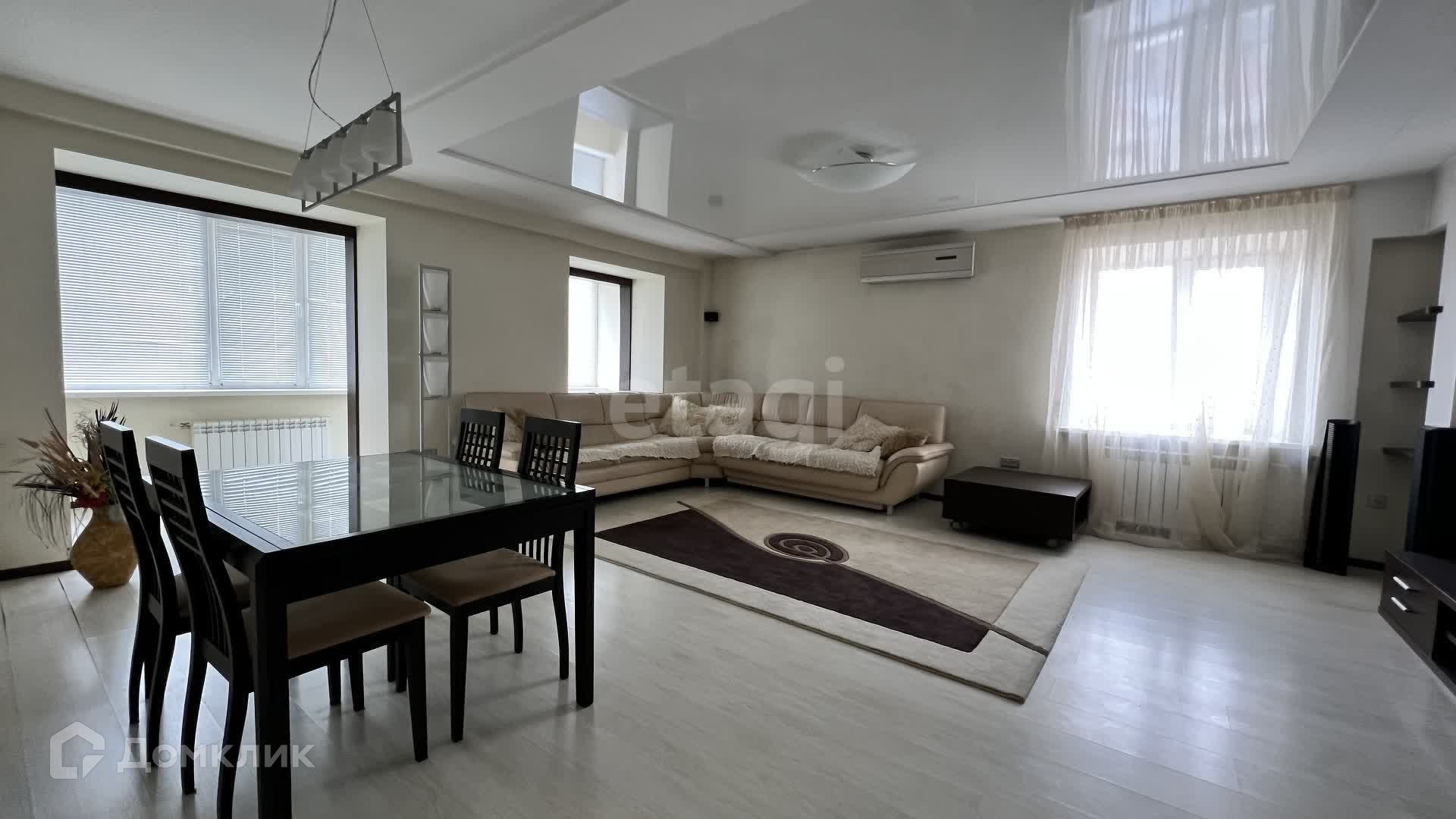 Большая гостиная; три спальни; кабинет с встроенным сейфом; кухня; гостевой санузел; основной санузел с душевой кабиной, гидромассажной ванной и сауной; три большие теплые лоджии, которые добавляют площадь квартире. За счет большой площади остекления квартира очень теплая, светлая и уютная.