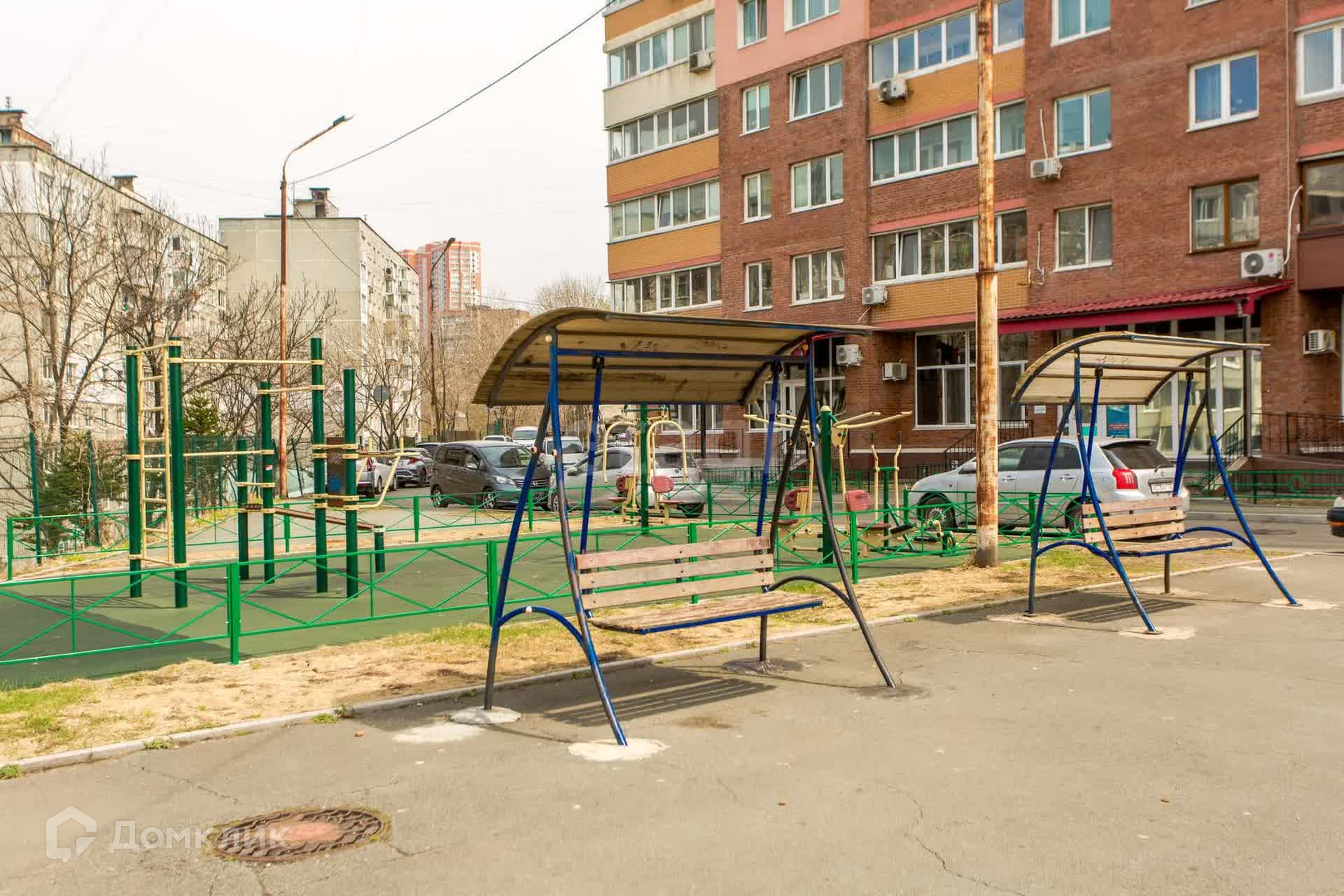 Дом находится в развитом районе с хорошей транспортной доступностью. Рядом вы найдете все необходимое для комфортной жизни: магазины, рестораны, школы, парикмахерские, аптеки. Большим преимуществом является детский сад, расположенный прямо в доме. На придомовой территории оборудованы современные детская и тренажерные площадки.