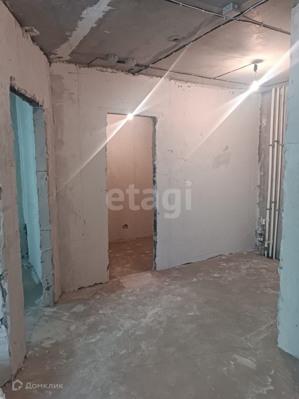 Стены отштукатурены, пол залит цементно песочным раствором, что говорит о качественной стяжке и ровном полу, осталось только положить напольное покрытие. Квартира уже полностью подготовлена к косметическому ремонту. В квартире уже проведён домофон с видеонаблюдением.
