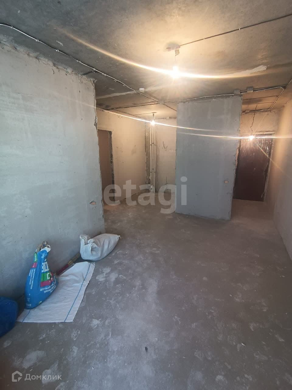 В квартиру уже проведено электричество, также электрическая разводка по комнатам. Уже сделана планировка 2х комнатной квартиры, отдельно спальня и гостиная - кухня.