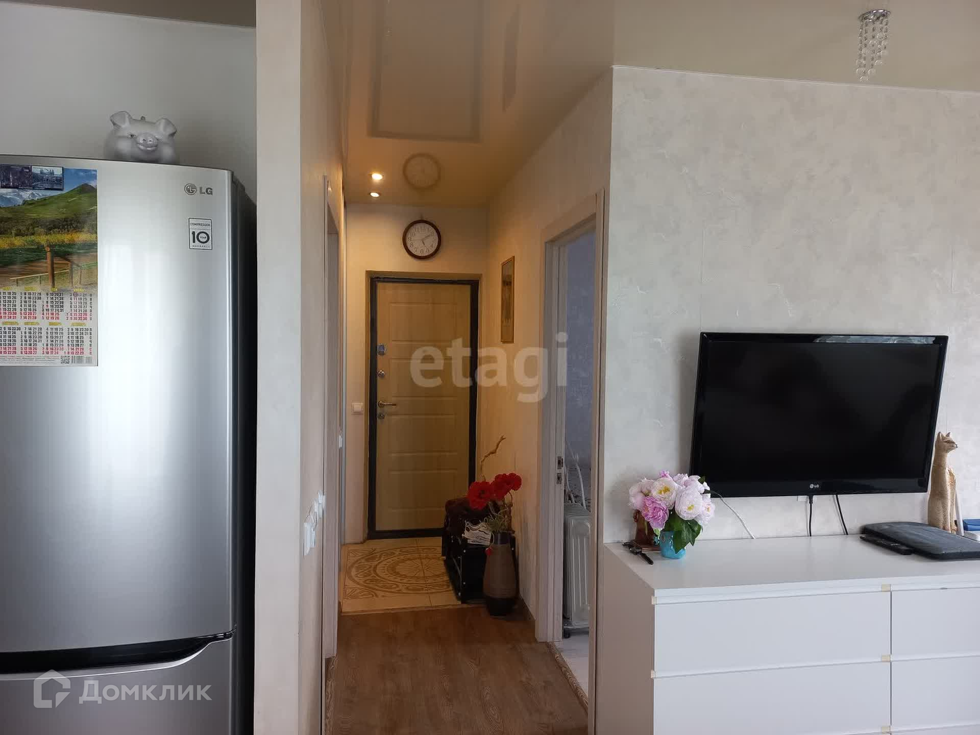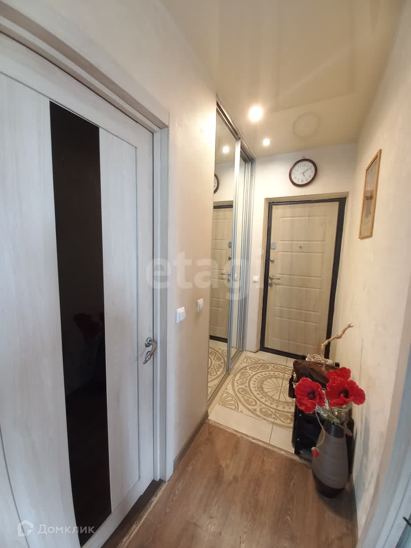 В прихожей есть большой шкаф-купе, металлическая входная дверь.