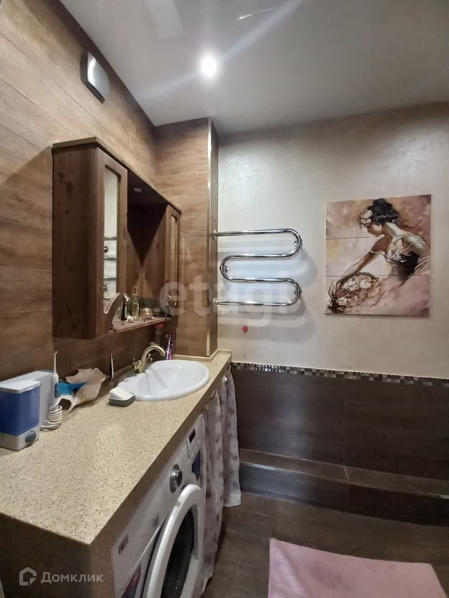 Подвесные и натяжные потолки с софитами и люстрами, установлены все счетчики учета водоснабжения и электричества. Теплый пол в ванной комнате, на кухне и лоджиях.