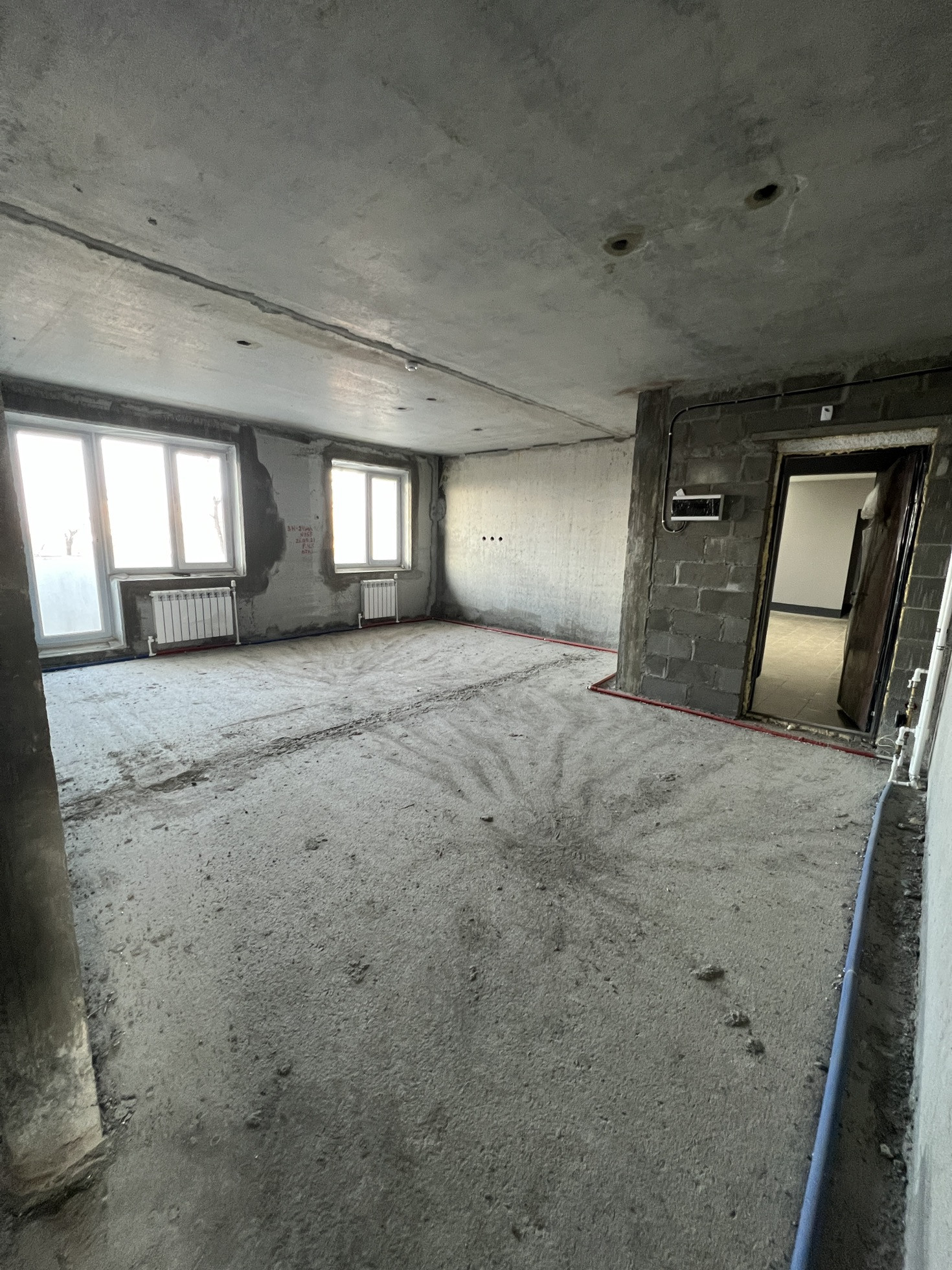 Квартира теплая, светлая, находится на высоком 2 этаже. Общая площадь квартиры 92,7 кв.м. с учетом двух просторных лоджий, площадь квартиры позволяет организовать 3 спальни, кухню и гостиную. Отделка черновая, высота потолков 2,6 м, установлены счетчики горячей и холодной воды, радиаторы отопления. Окна выходят на 2 стороны света - лесной массив и двор.