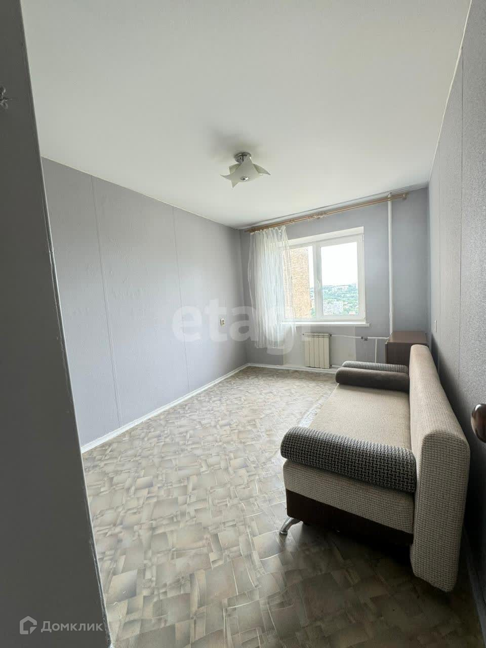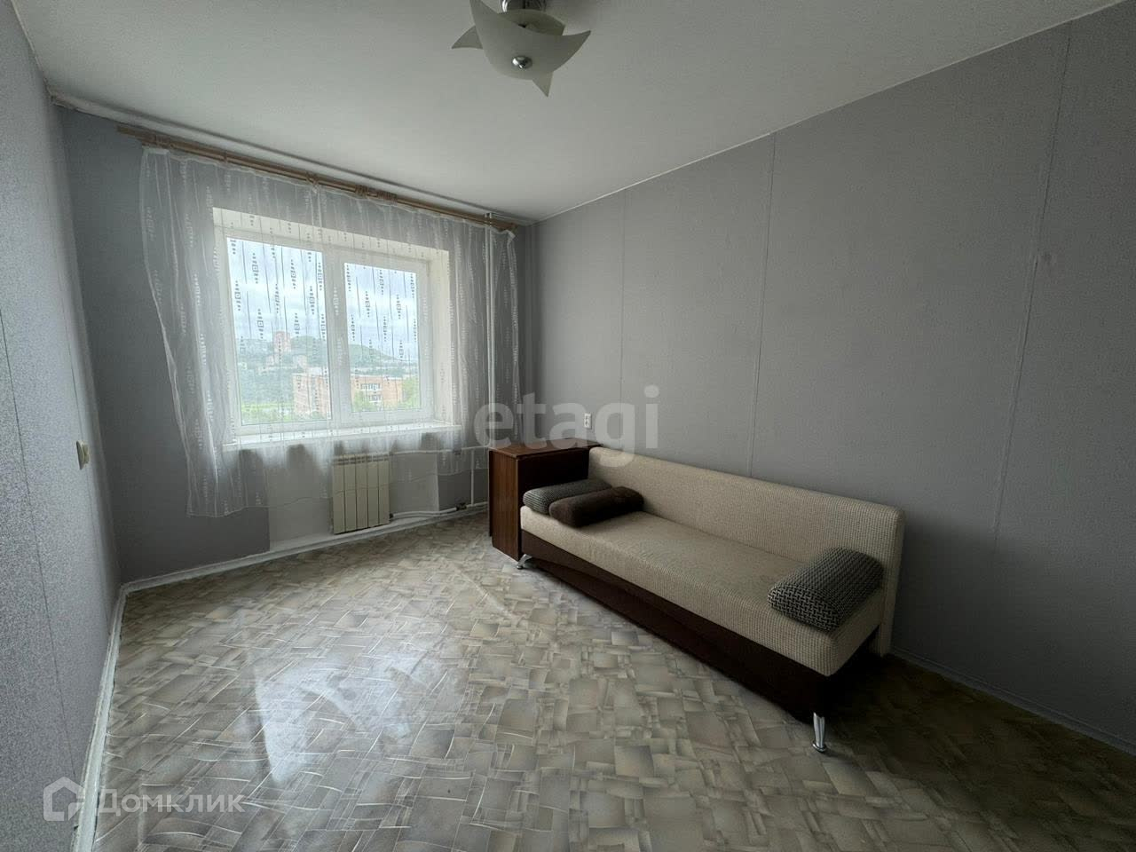 + В квартире сделан косметический ремонт, пол линолеум, стены выровнены и оклеены обоями, пластиковые окна, натяжной потолок, сантехника заменена.