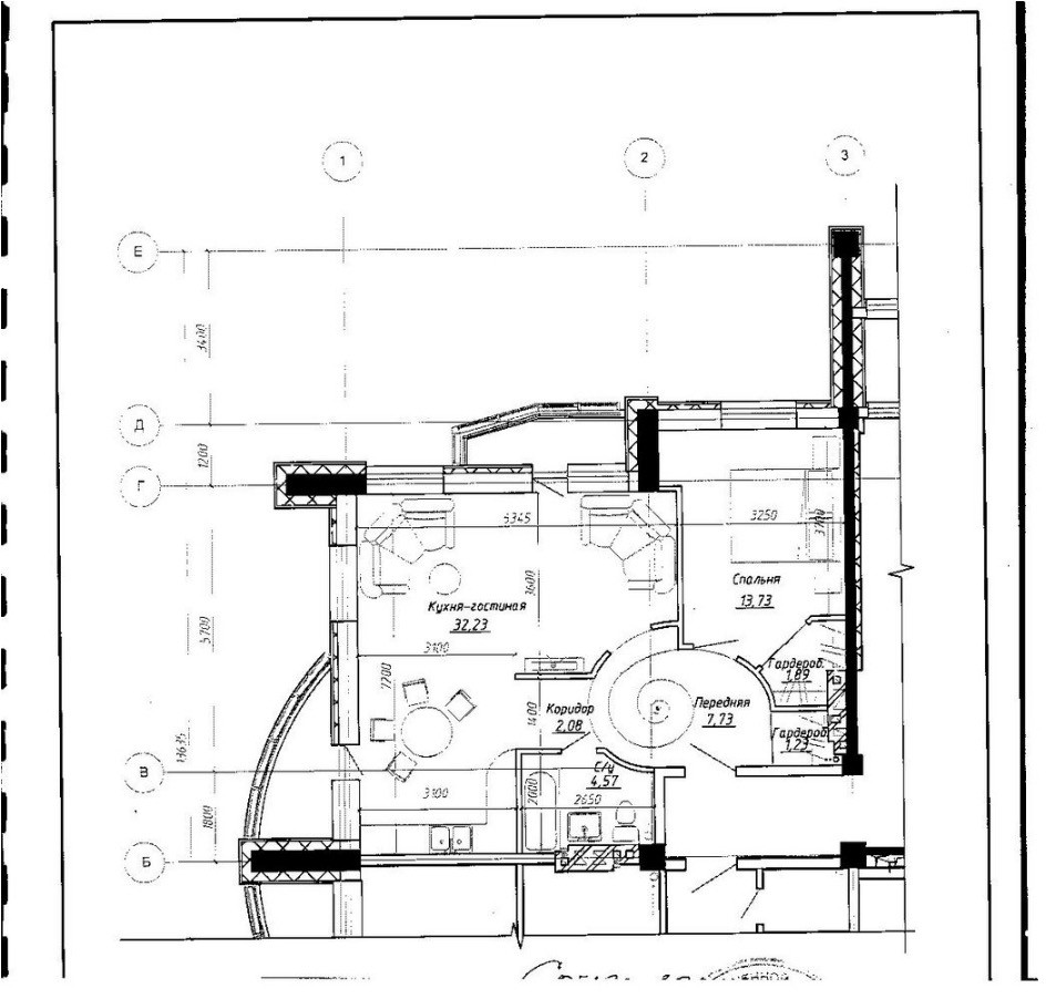 +кухня по дизайн-проекту совмещена с гостиной;