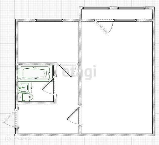 Общая площадь 33.6 м2