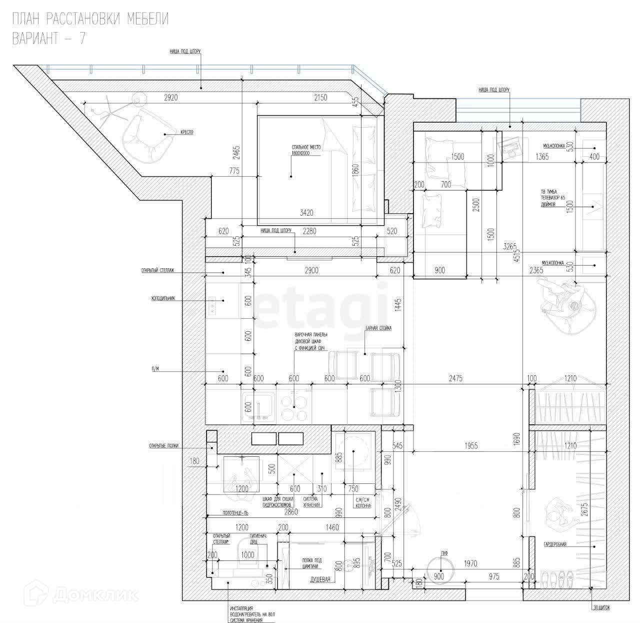 + Шторы блэкаут с электрокарнизом для комфортного сна;