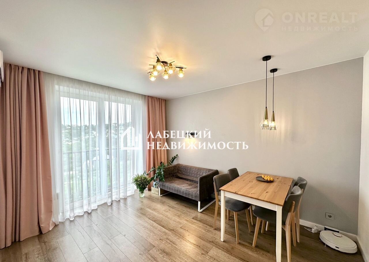 В квартире выполнен ДИЗАЙНЕРСКИЙ ремонт с использованием качественных материалов. Стены - обои под покраску, матовый натяжной потолок, на полу - качественный ламинат, санузел - керамогранит. Теплый пол в гостиной и санузле. Современная кухня с варочный панелью, духовым шкафом, вытяжкой и раковиной. В кухне-гостиной установлен кондиционер. В спальнях системы хранения открытого типа.