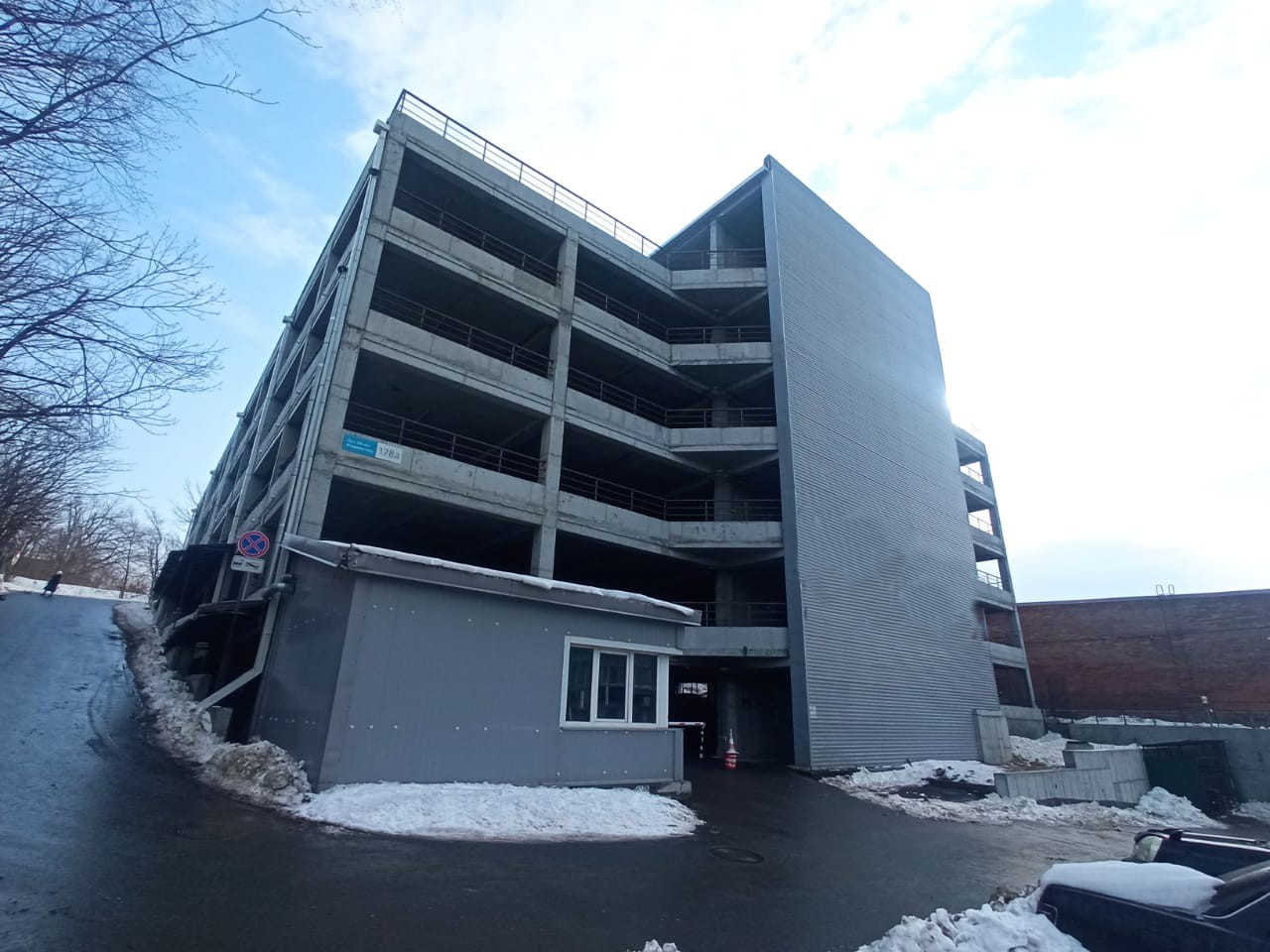 Парковочное место расположено на втором, почти первом этаже паркинга. Паркинг закрытый, круглосуточно охраняется. На въезде установлен шлагбаум . Для заезда автомобиля используется электронный ключ.