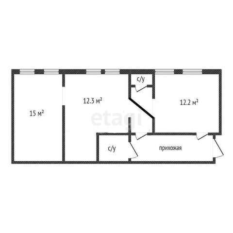 Объект состоит из прихожей, 3-х помещений и 2-х санузлов.