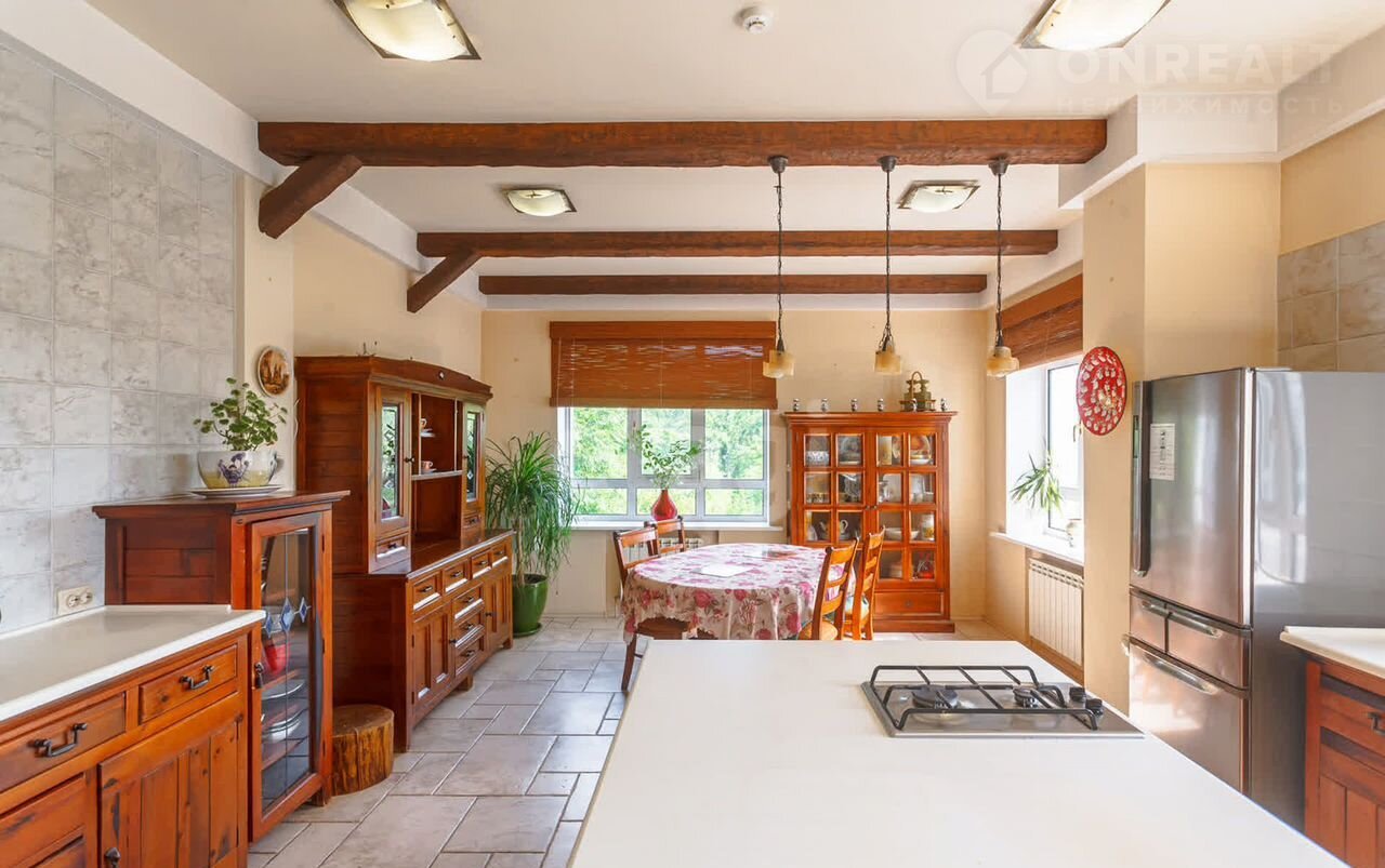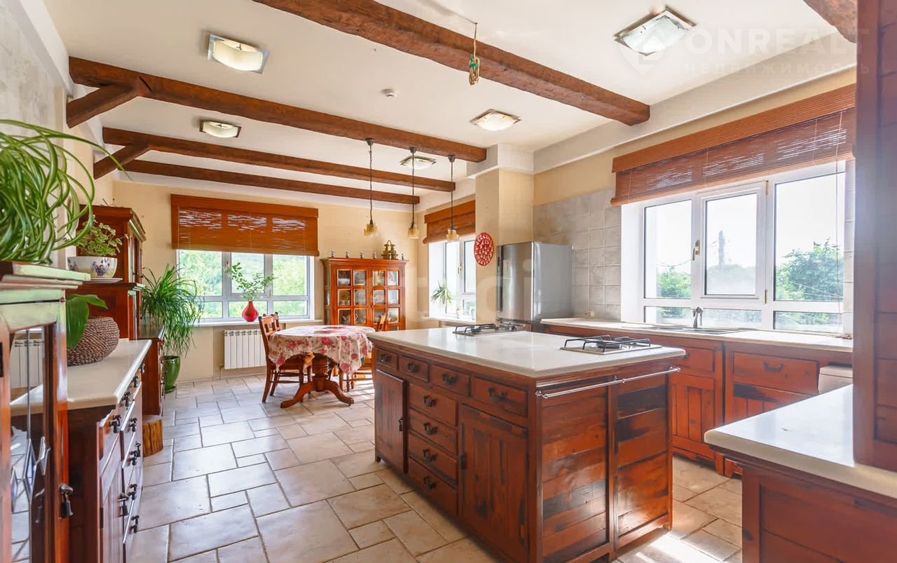Сам дом — это воплощение комфорта и роскоши. Площадь 635 м² включает в себя просторную закрытую веранду с витражами и бассейном, огромную гостиную с камином, спа-зону и банный комплекс. Здесь есть все для активного отдыха: спортзал, бассейн на улице и несколько зон для релаксации. Четыре санузла и две полноценные кухни обеспечивают максимальное удобство для вас и ваших гостей.
