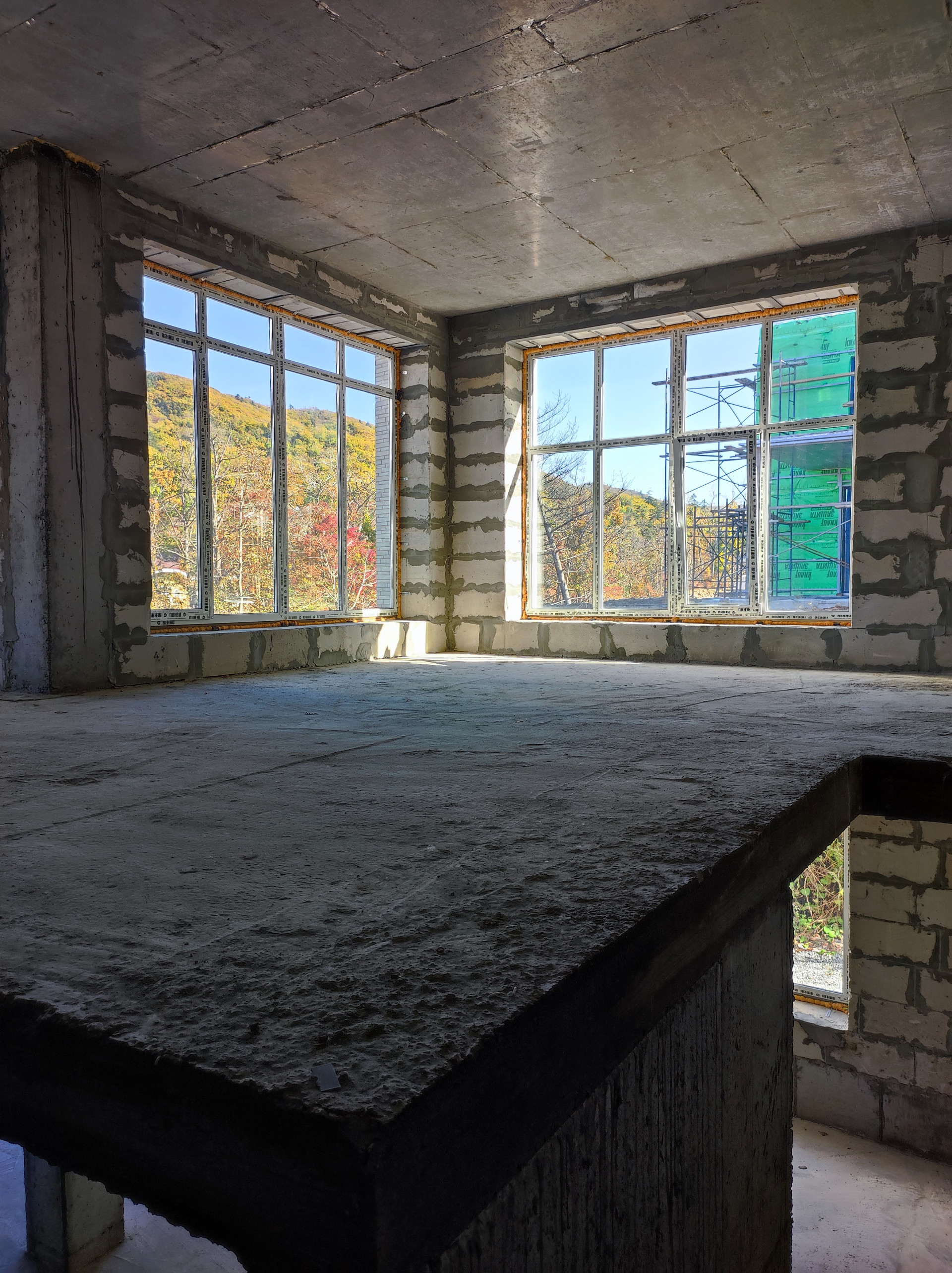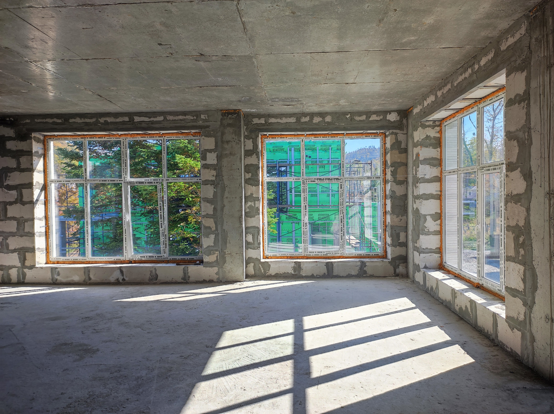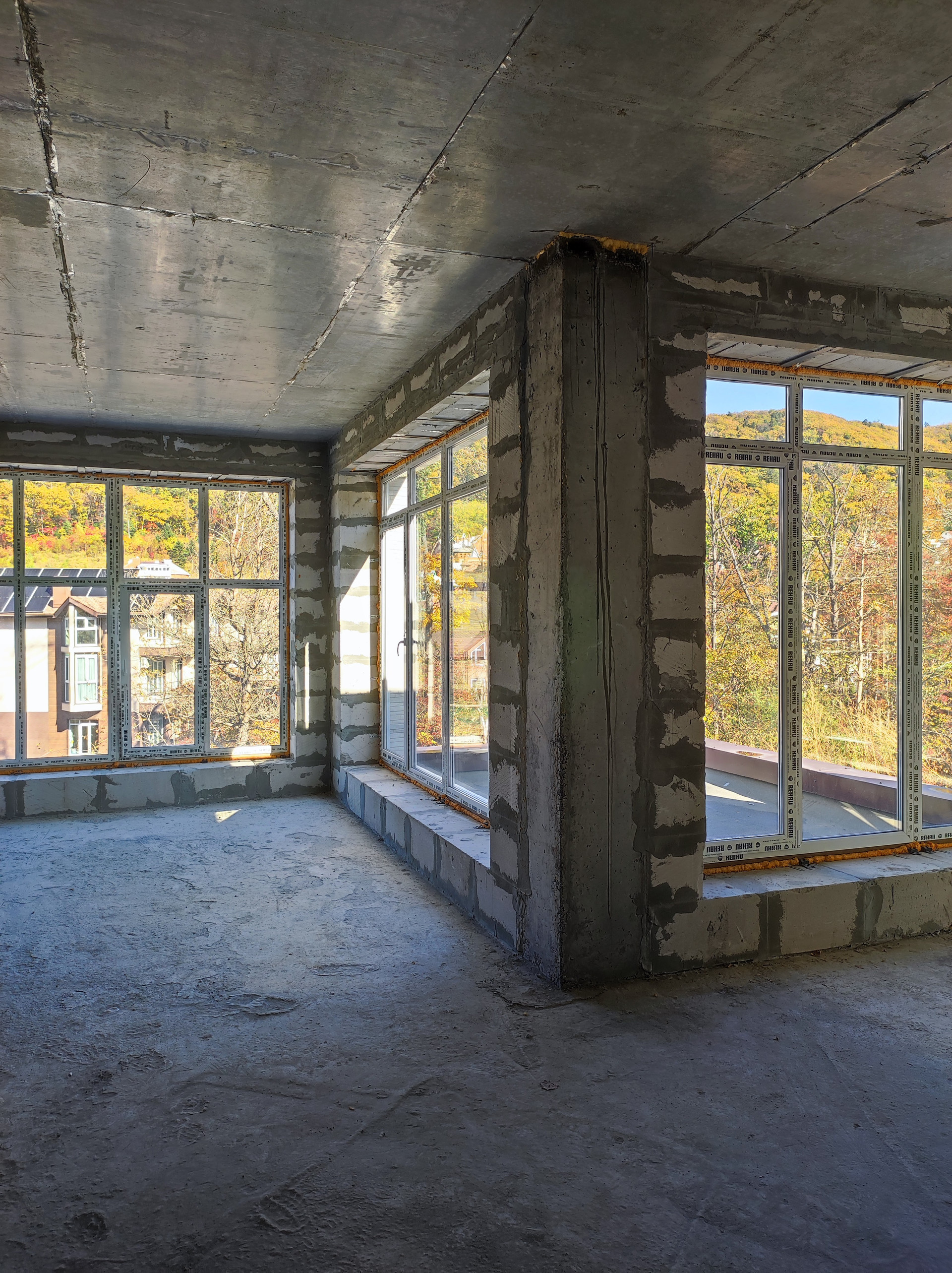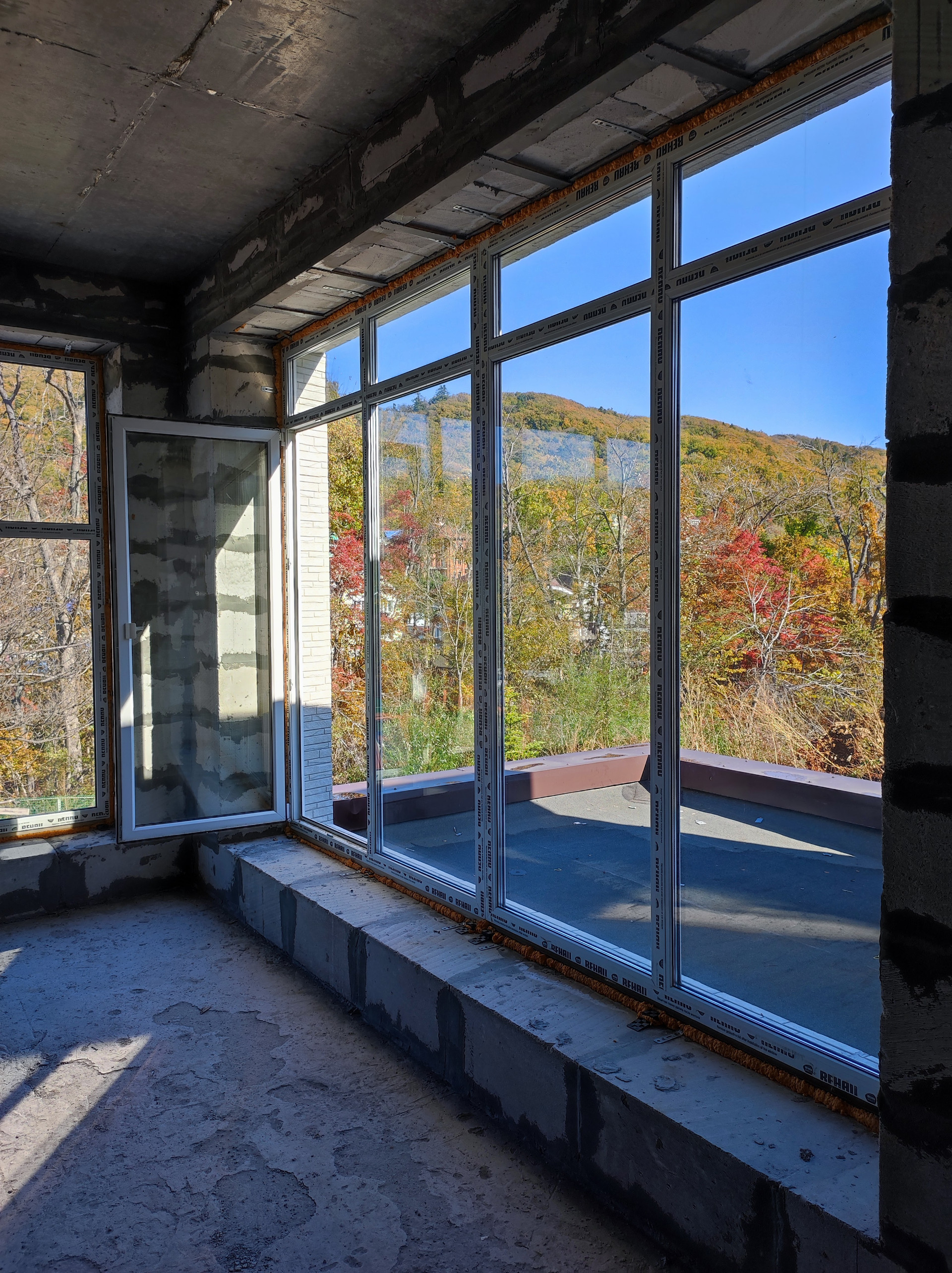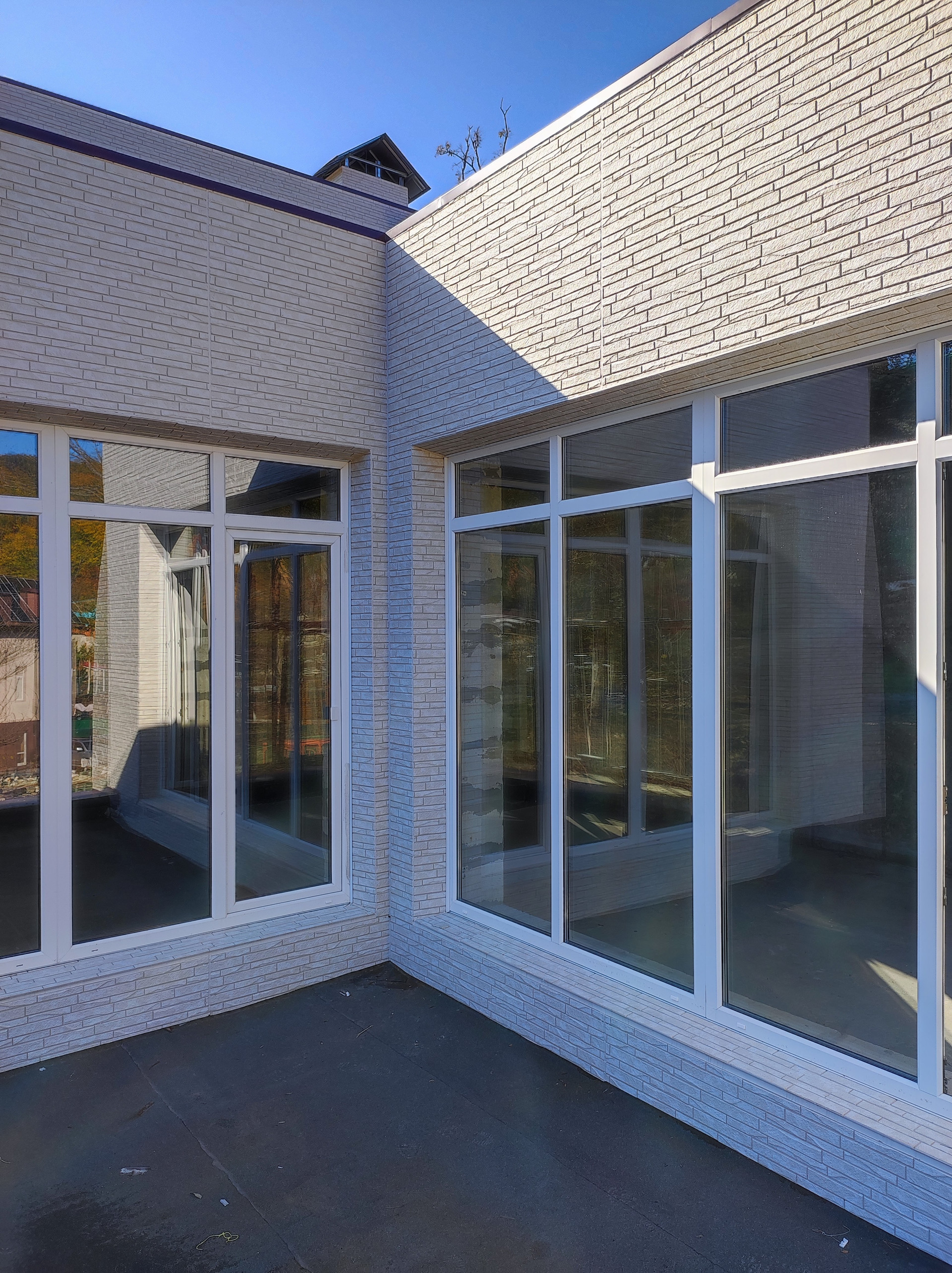 В доме очень много витражных окон, которые дают естественное освещение и много света и тепла. Тепло зимой и прохладно летом.
