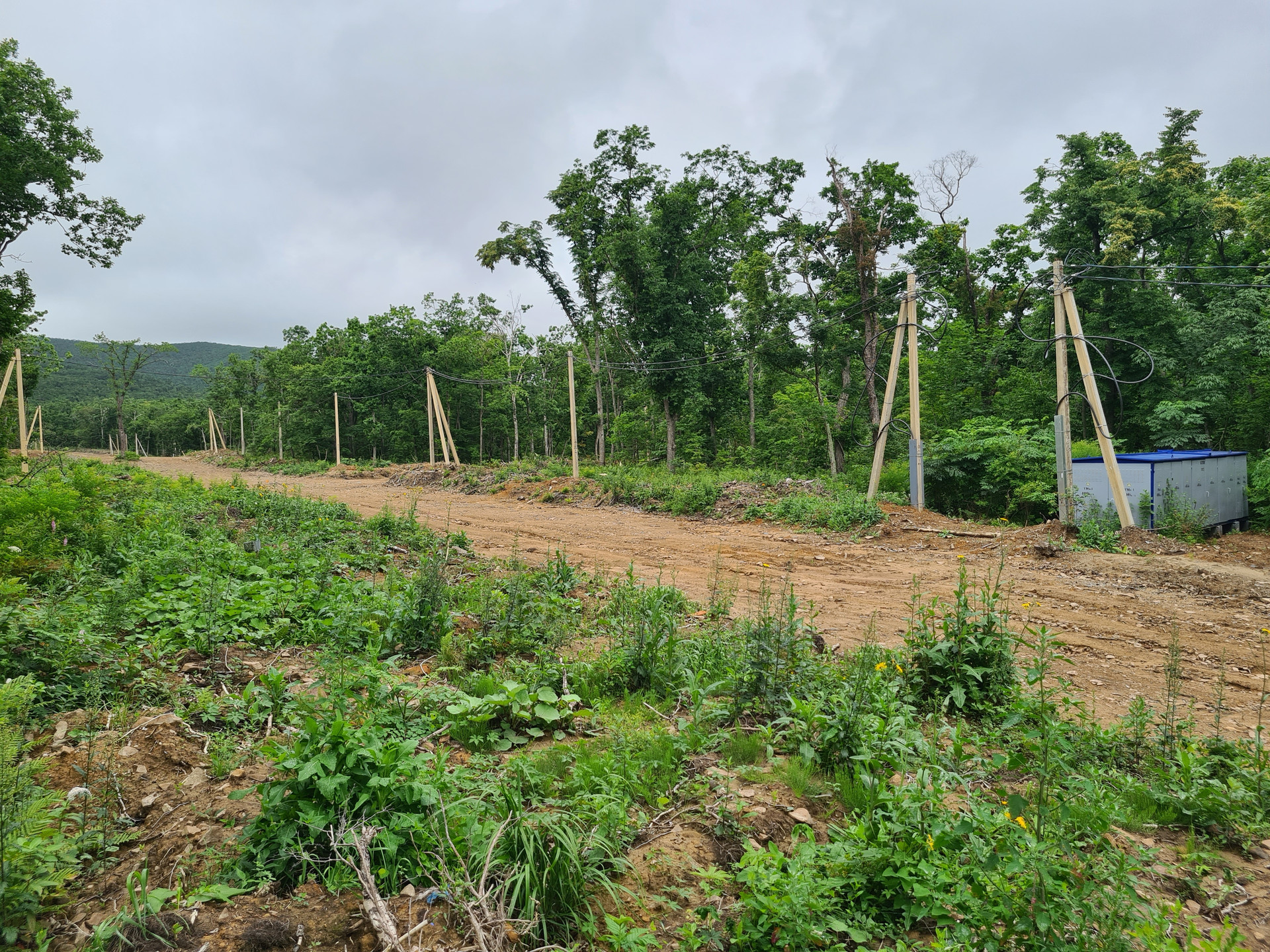 Напротив участка трансформаторная подстанция. Начали подключать электричество.