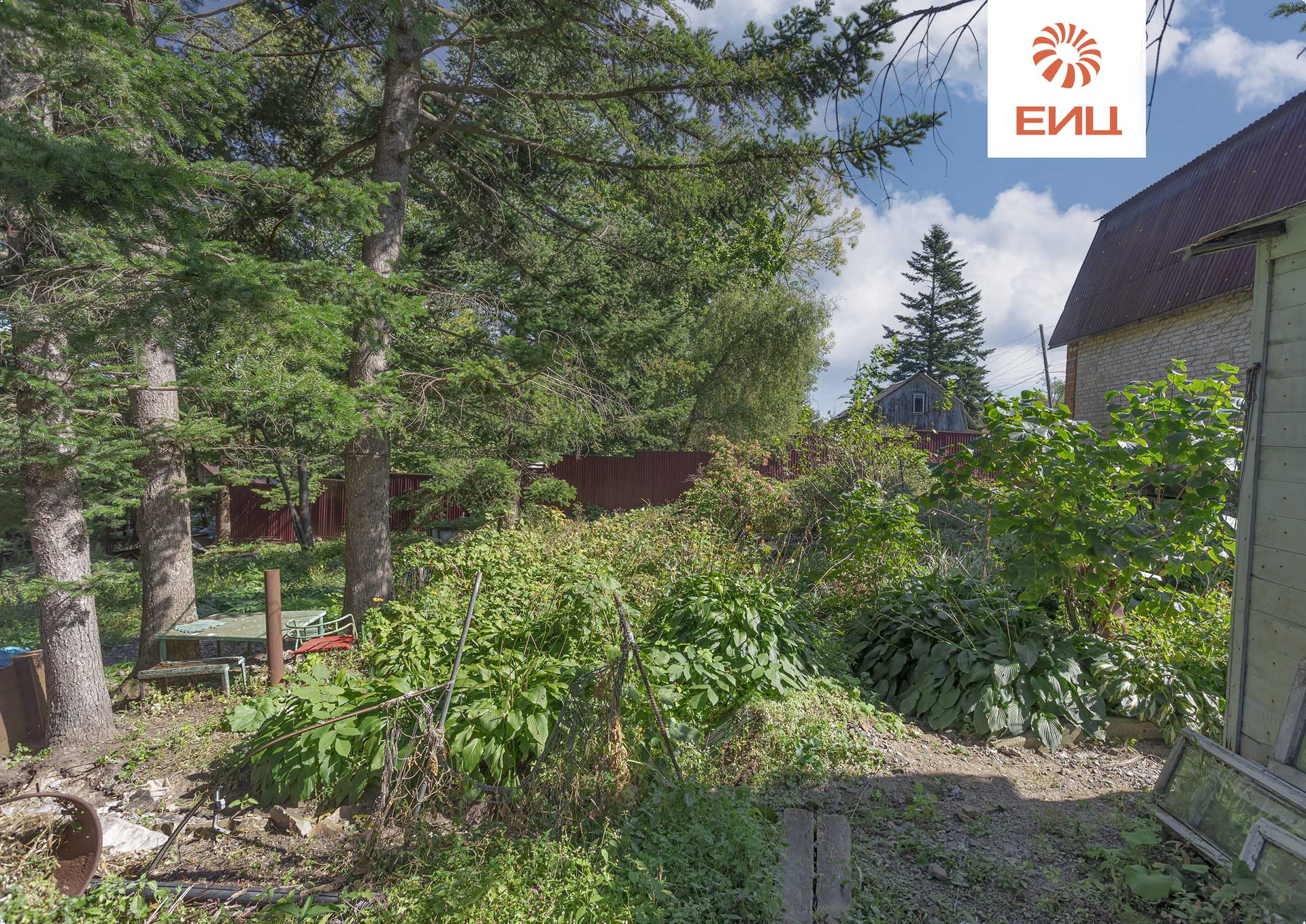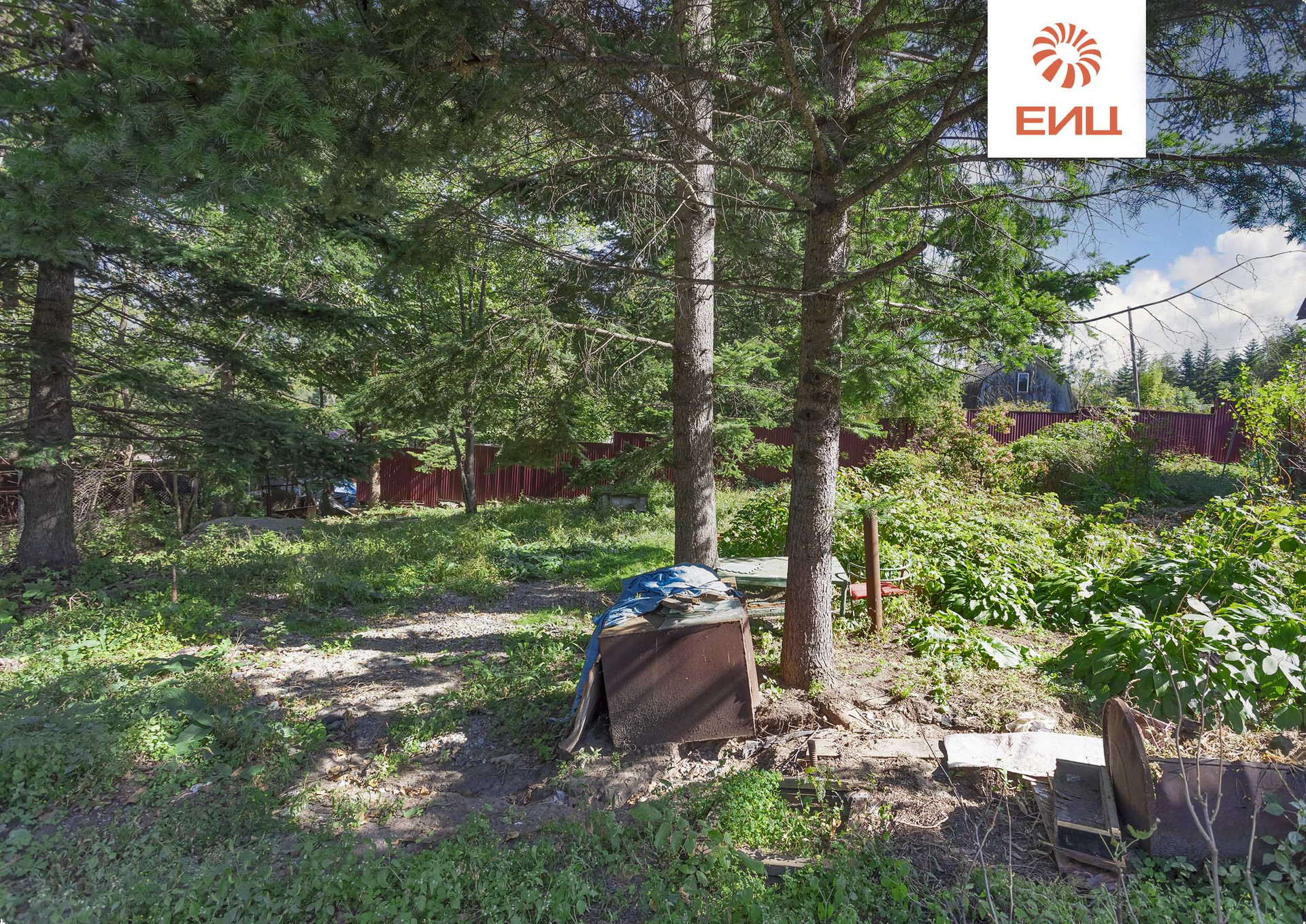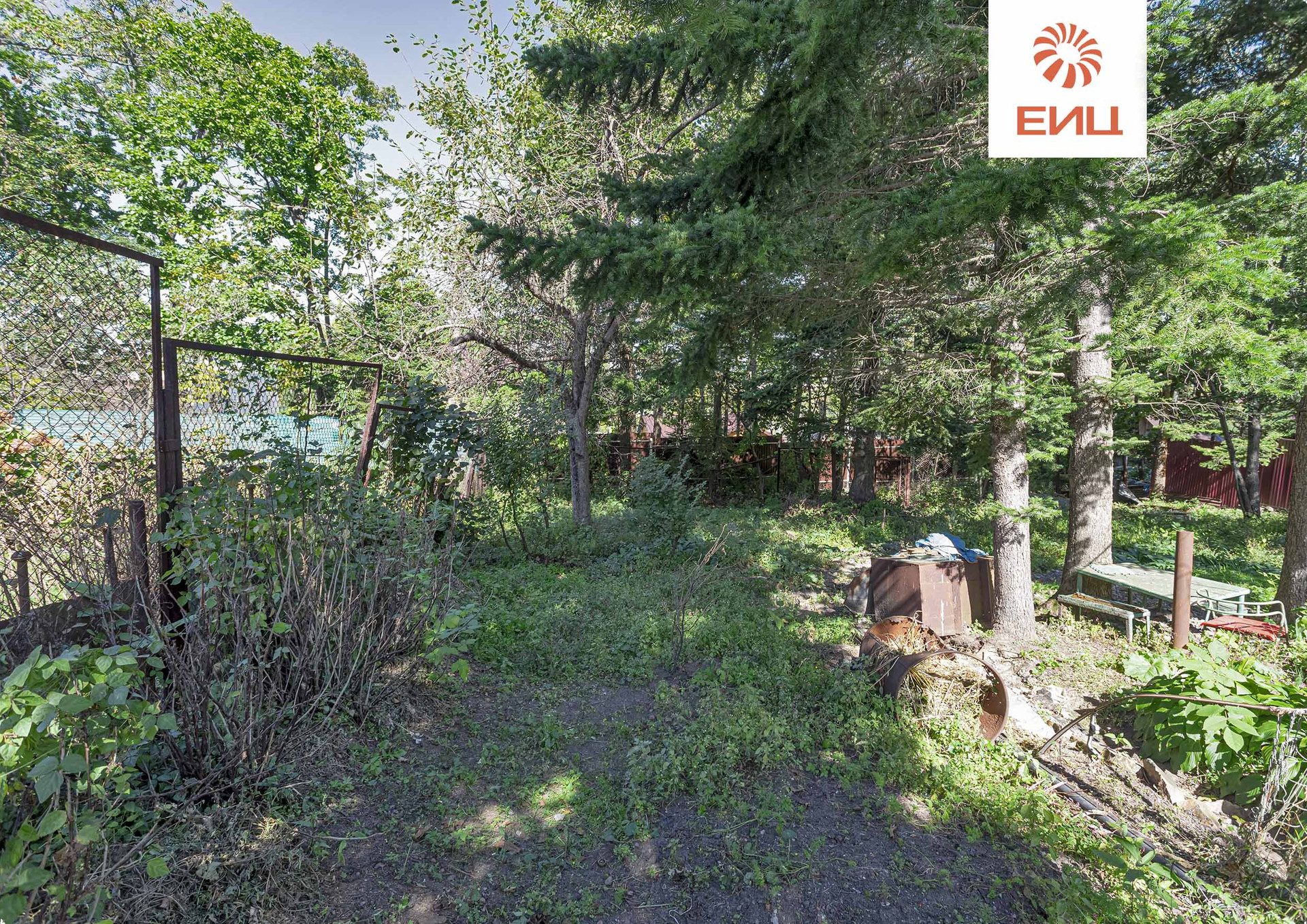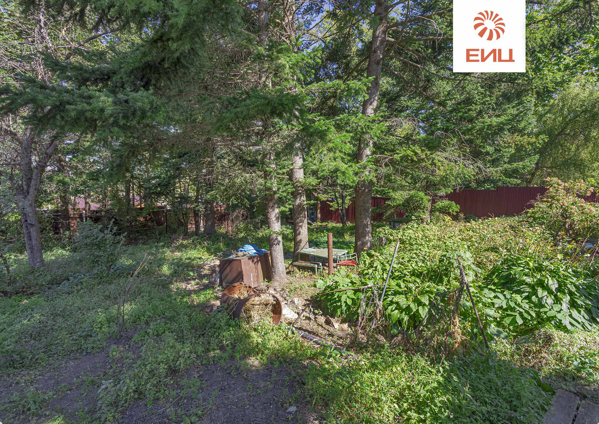На территории участка роща с многолетними хвойными деревьями с зоной отдыха в естественной тени.