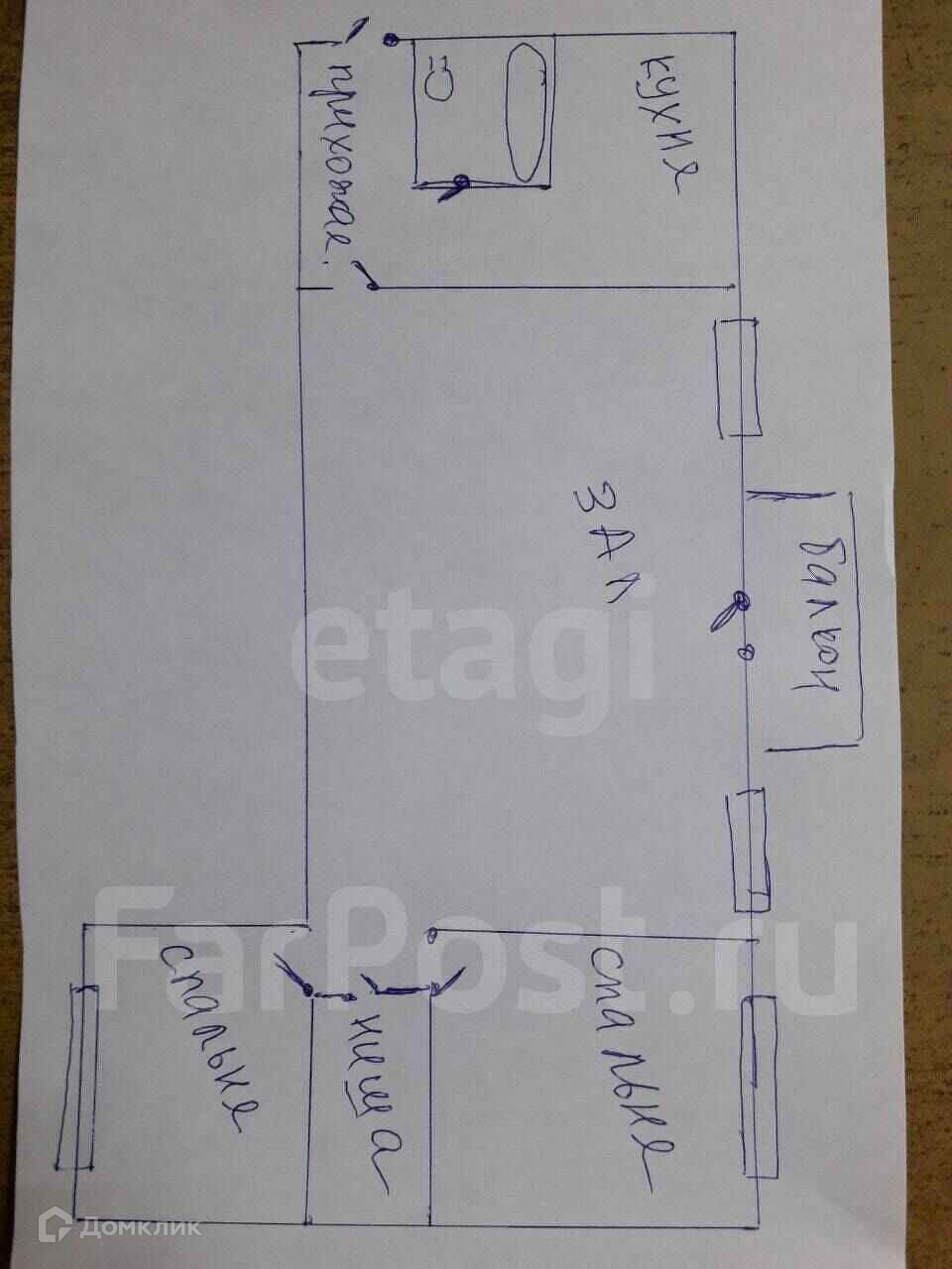 3-комнатная квартира, 58 м2, в аренду на длительный срок во Владивостоке, Русская улица, 52