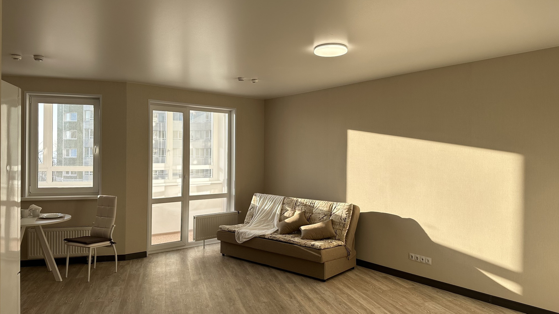 Железная дверь, Линолеум, Межкомнатные двери, Натяжной потолок, Пластиковые окна, Стены выровнены, Софиты