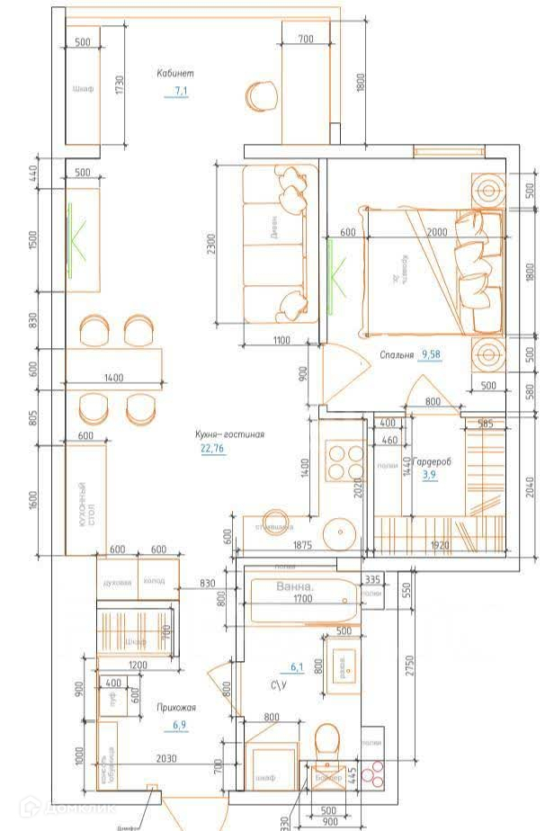 Двуспальная кровать, Диван, Компьютерный стол, Кухонный гарнитур, Обеденный стол, Письменный стол, Шкаф, Шкаф-купе