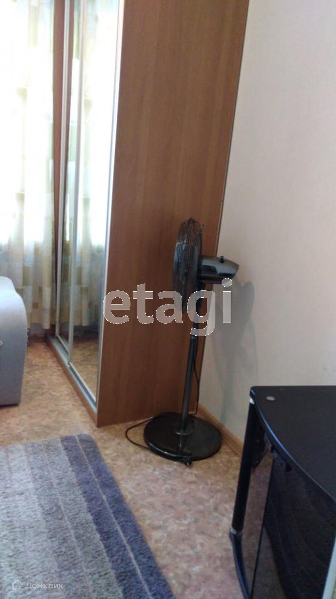 В квартире есть вся необходимая мебель и техника для проживания.Квартира расположена на среднем этаже 9-этажного кирпичного дома, площадь 14 кв.м., в нормальном жилом состоянии, вид на город – восток. Отремонтированный чистый подъезд, новый лифт.