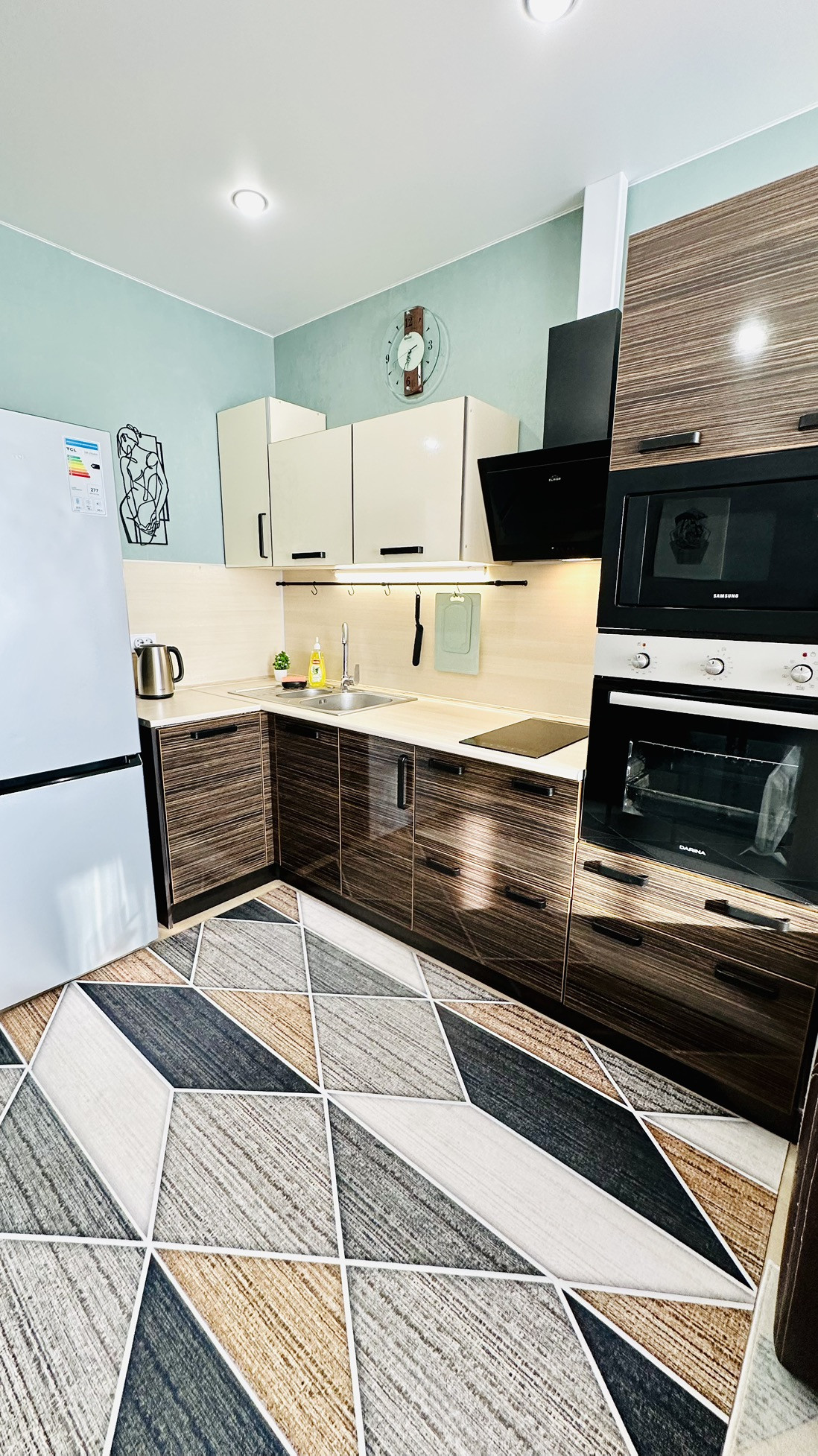 - кухня оборудована всем необходимым, холодильник, стеклокерамическая плита, духовой шкаф, микроволновая печь, тостер, чайник, посуда, посудомойка, кастрюли и сковородки, сахар, соль, чай, питьевая вода.