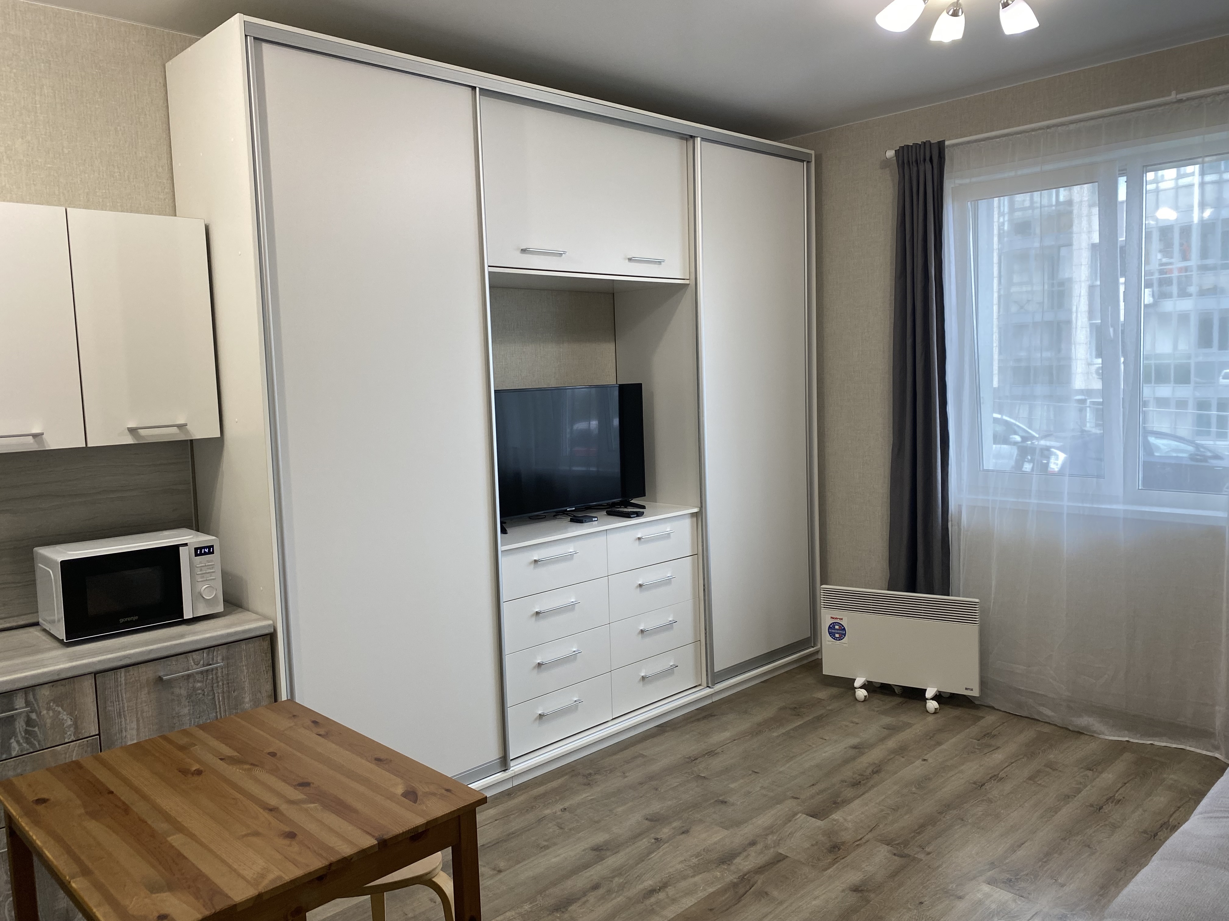 Дом введен в эксплуатацию в 2019 году. Отопление в доме электрическое, конвектор, температуру можете регулировать сами. Установлены видеокамеры на всей территории ЖК , на входе домофон и охранник для обеспечения безопасности жильцов.