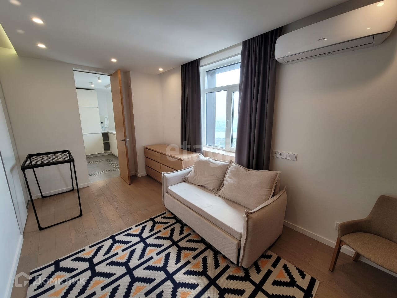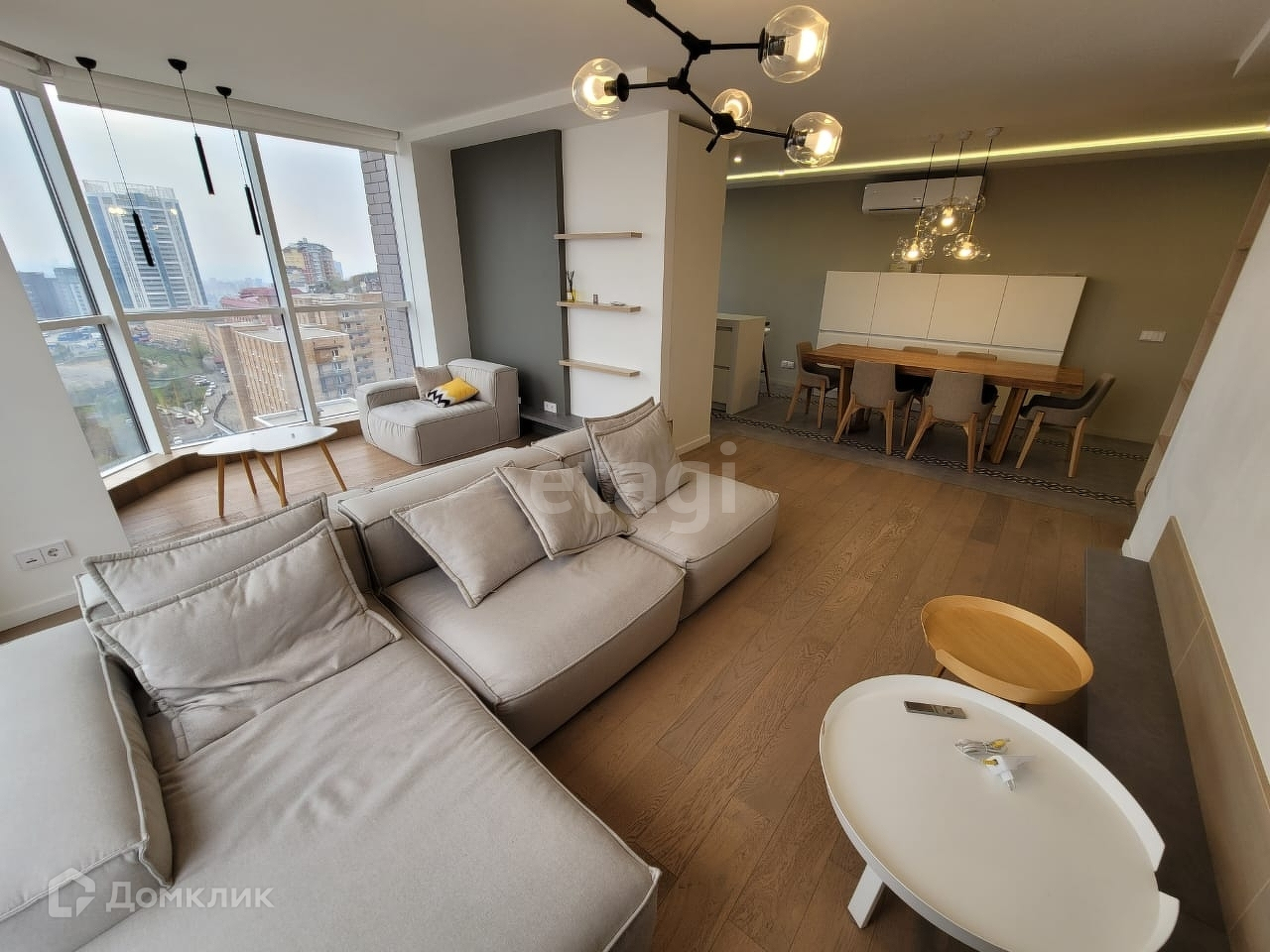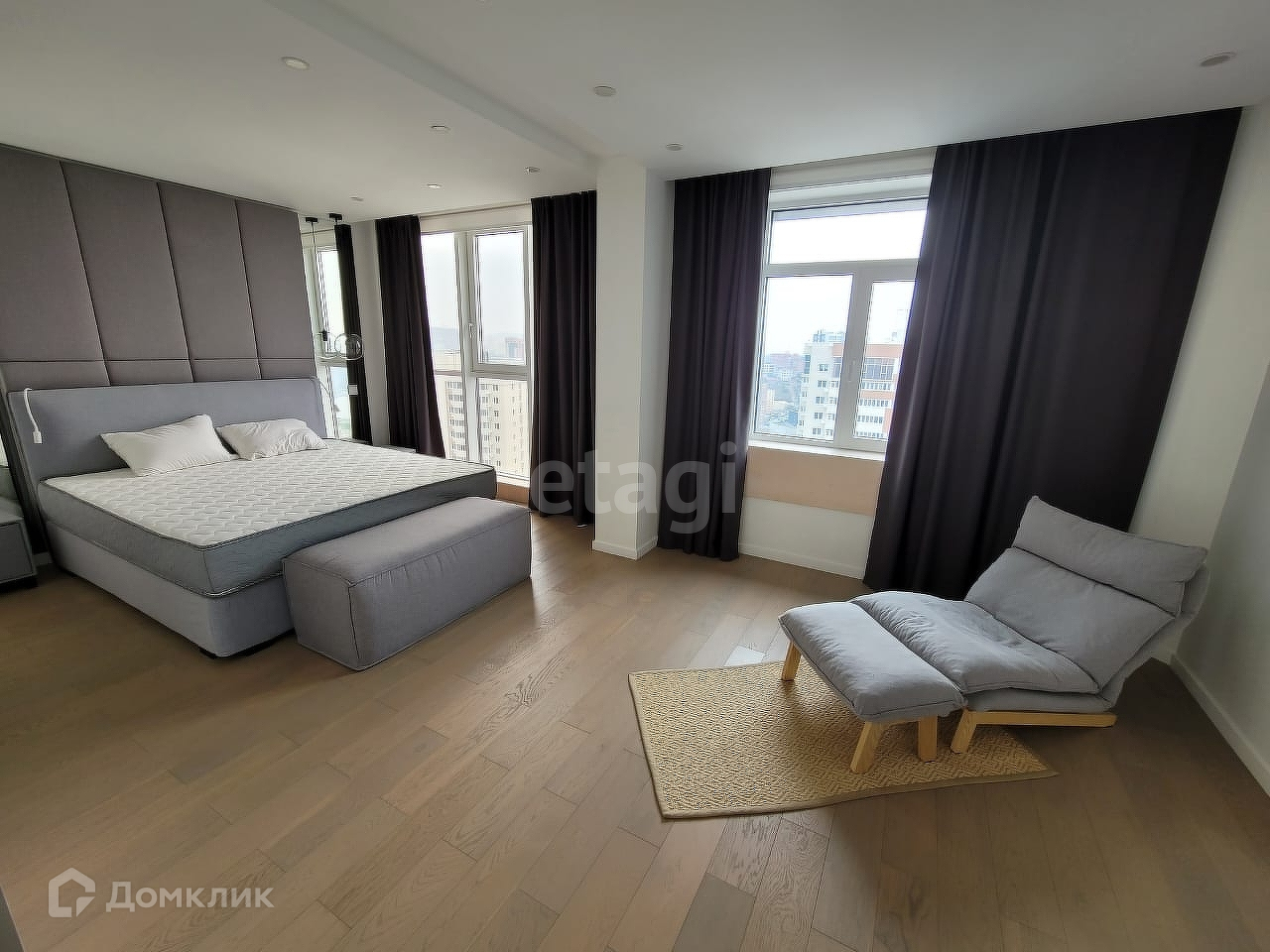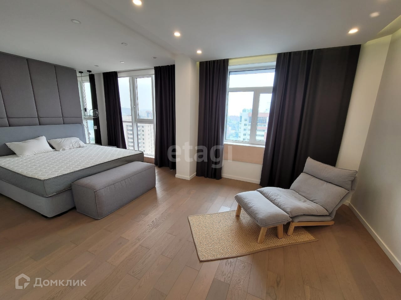 Балкон довольно просторный Придомовая территория оборудована парковочными местами и детской площадкой Все необходимое рядом: магазины, супермаркеты, аптеки, школы и дошкольные учреждения, остановки общественного транспорта. Квартира очень просторная, светлая с высокими потолками, панорамными окнами. Отличная планировка, удобная для комфортного расположения мебели. Окна смотрят на юго-восточную сторону. Квартира очень светлая, солнечная.Из окон открывают прекрасный вид на город.