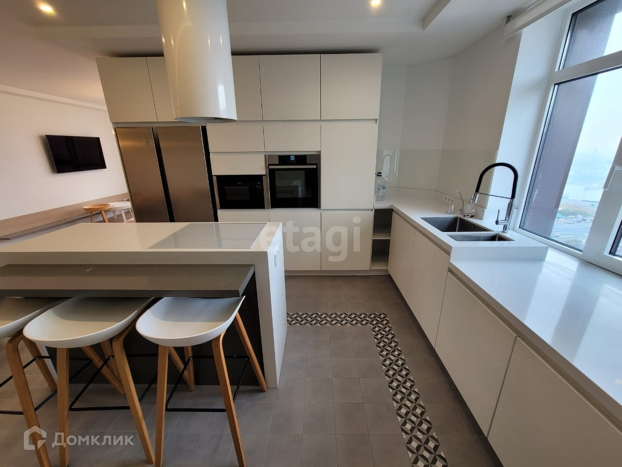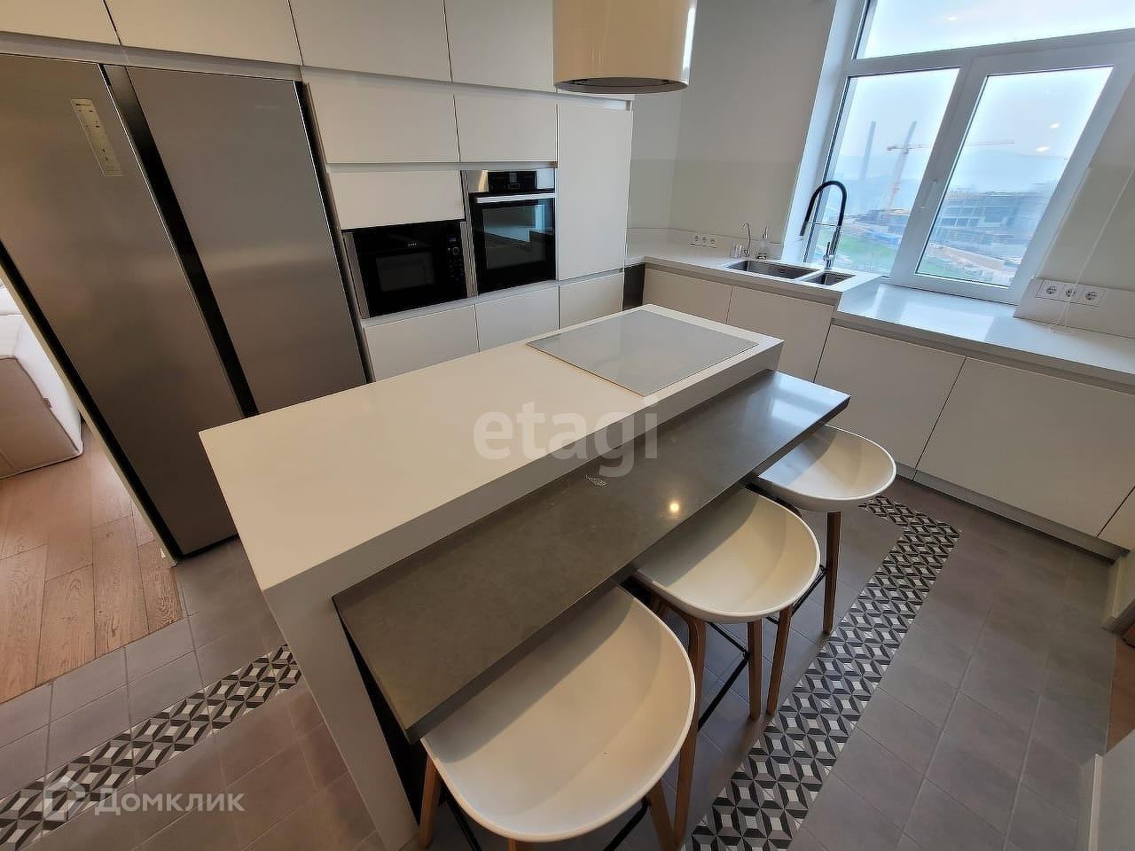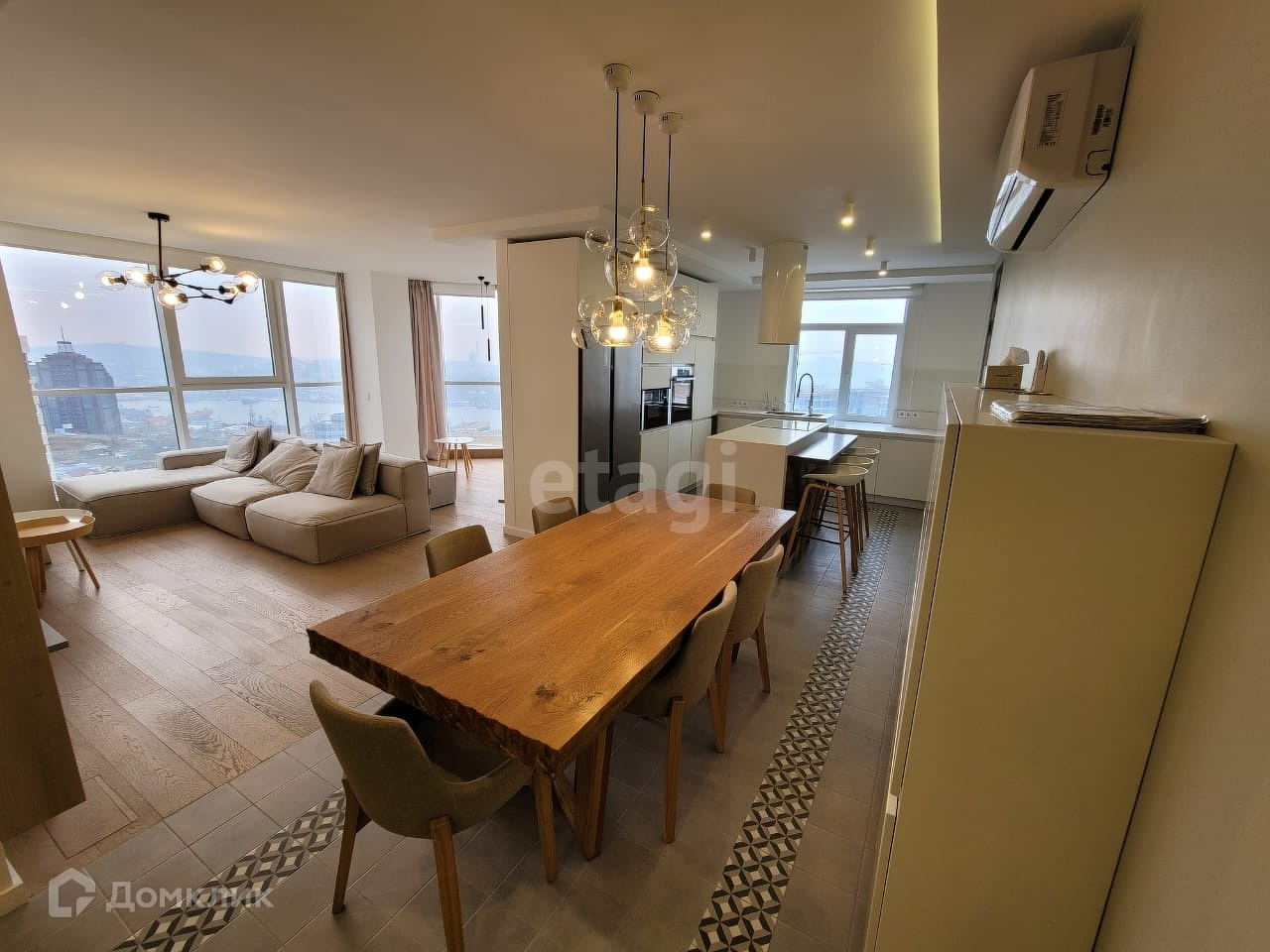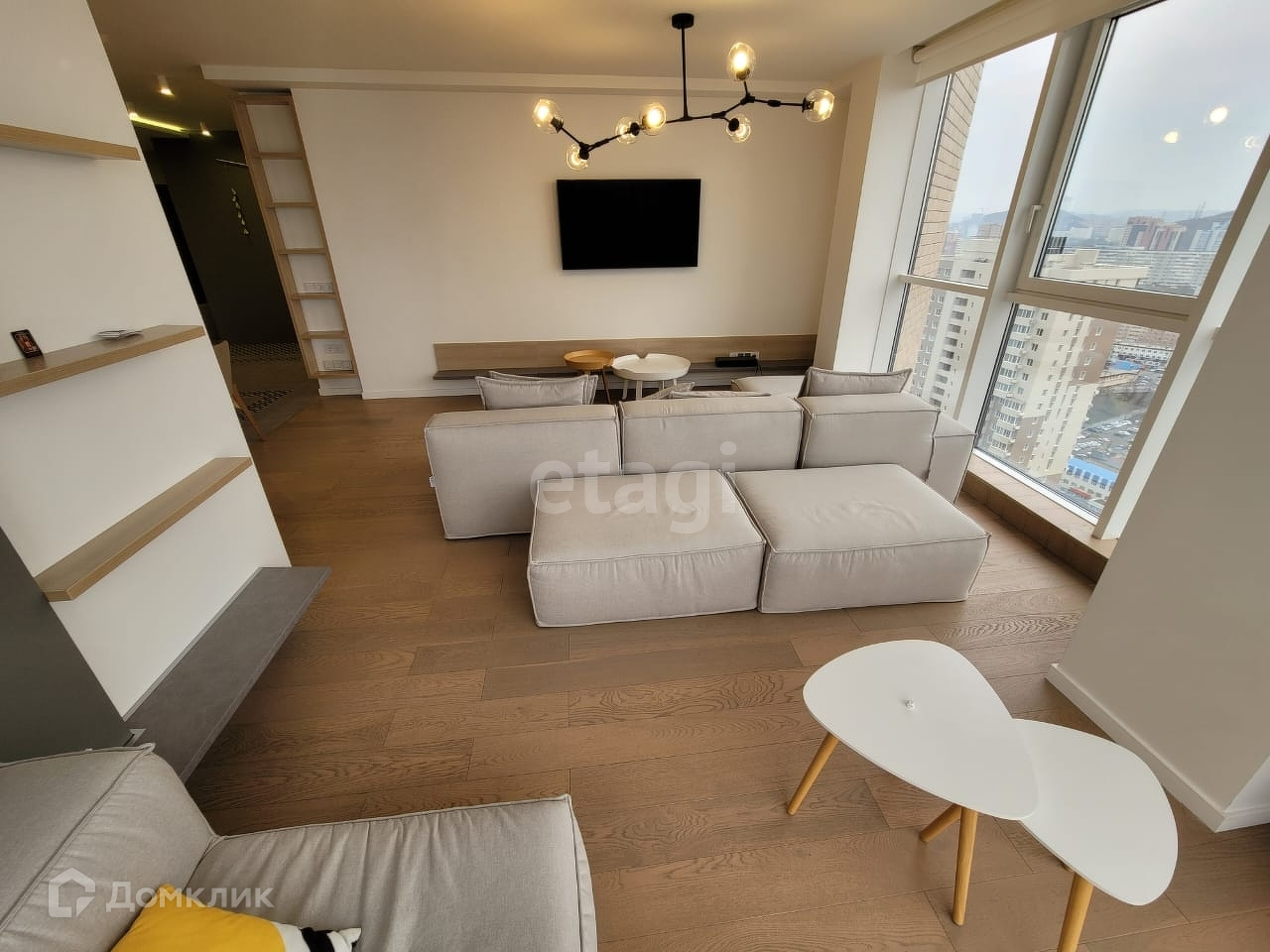 Балкон довольно просторный Придомовая территория оборудована парковочными местами и детской площадкой Все необходимое рядом: магазины, супермаркеты, аптеки, школы и дошкольные учреждения, остановки общественного транспорта. Квартира очень просторная, светлая с высокими потолками, панорамными окнами. Отличная планировка, удобная для комфортного расположения мебели. Окна смотрят на юго-восточную сторону. Квартира очень светлая, солнечная.Из окон открывают прекрасный вид на город.