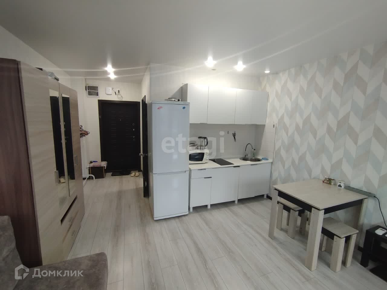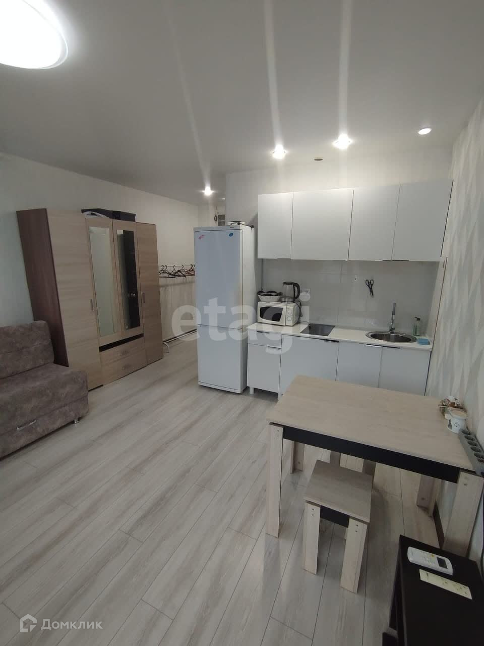 Агентство недвижимости Этажи предлагает к сдаче уютную студию, все уже готово для комфортной жизни, установлена необходимая мебель, так же вся техника. Не далеко от дома есть детские сады, школы, торговые центры, спортивные клубы, аптеки, магазины и удобно расположенные автобусные остановки. Из окон открывается великолепный вид. Возле дома всегда есть свободные парковочные места, вы можете смело приглашать гостей.