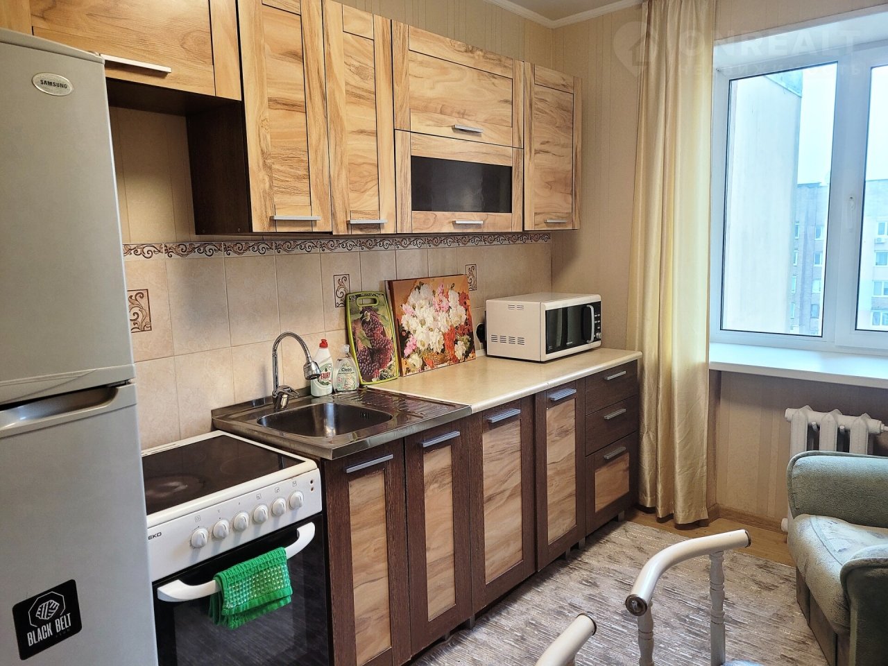 • Техника: WI-FI, кабельное ТВ, холодильник, плита, микроволновка, стиральная машина, фен, утюг.