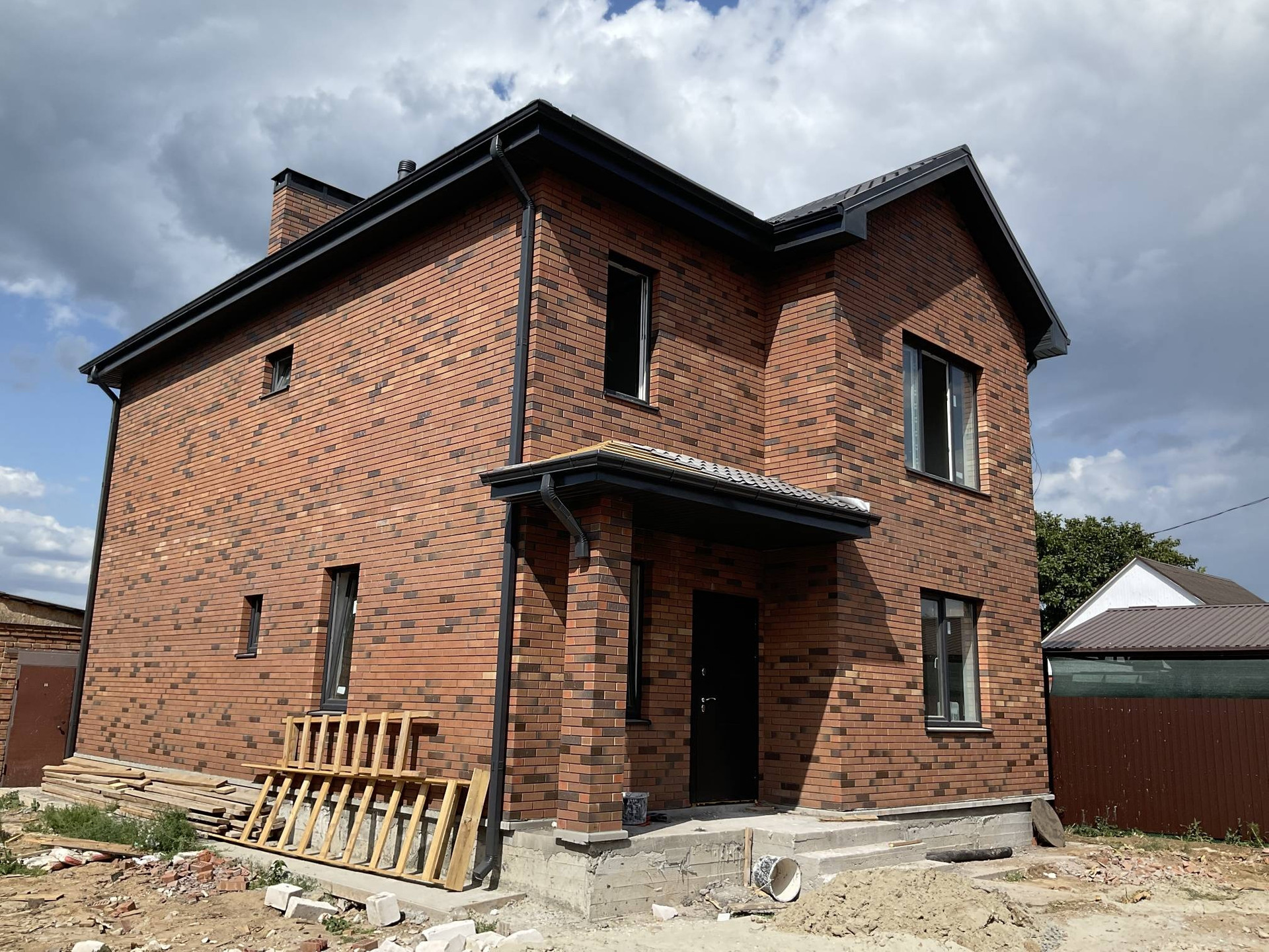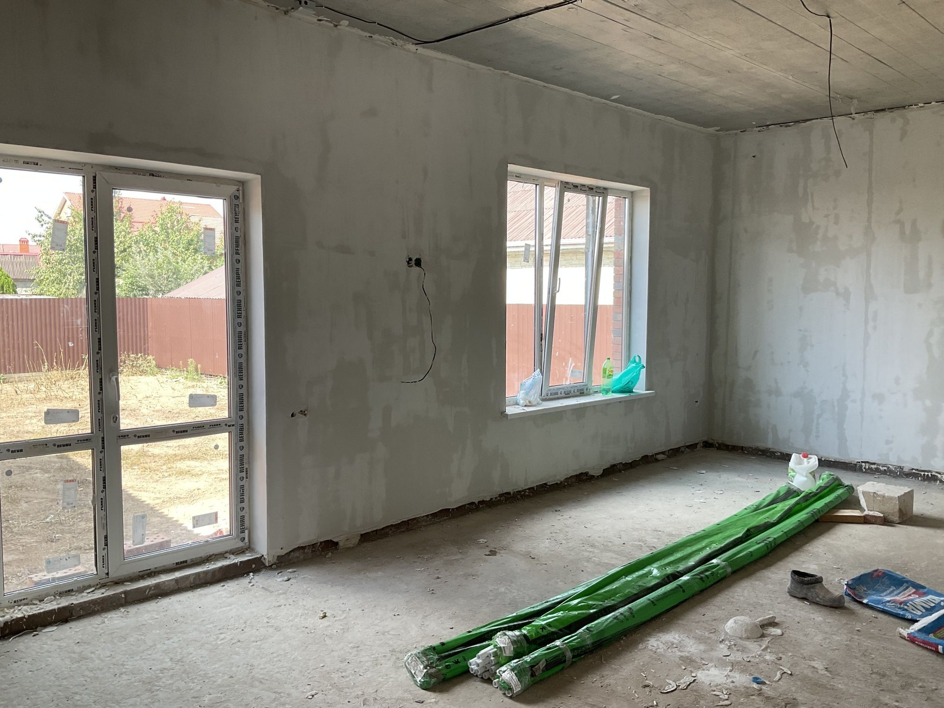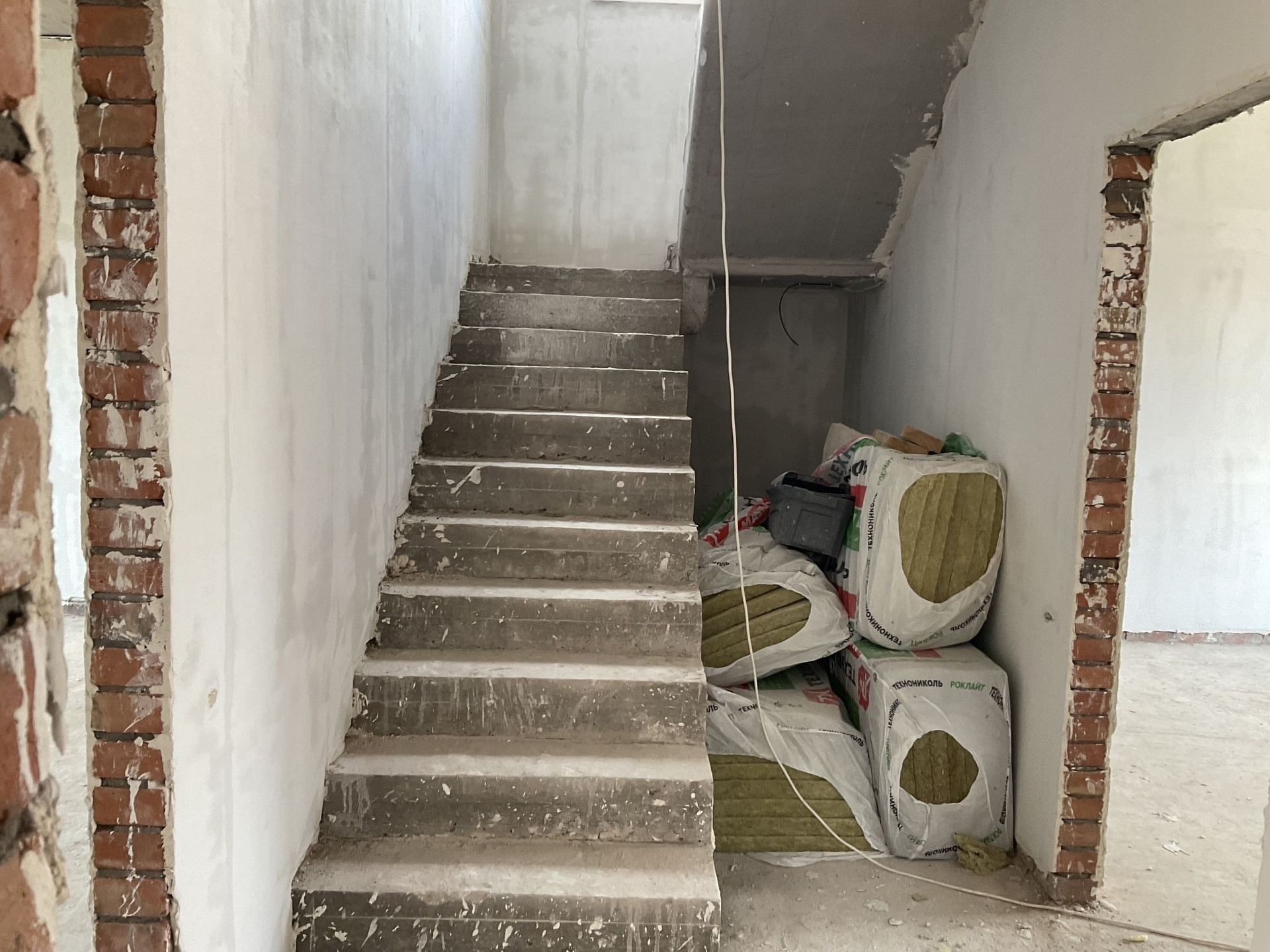 На первом- котельная, прихожая , кухня- гостиная , с/у; второй- 3 спальни -одна большая с гардеробной,с/у.  Утепленная входная дверь, окна rehau. Пол стяжка с утеплителем. Высота потолка 3м. Межкомнатные перегородки -кирпич. Газовое отопление ,вода, канализация двойной септик.