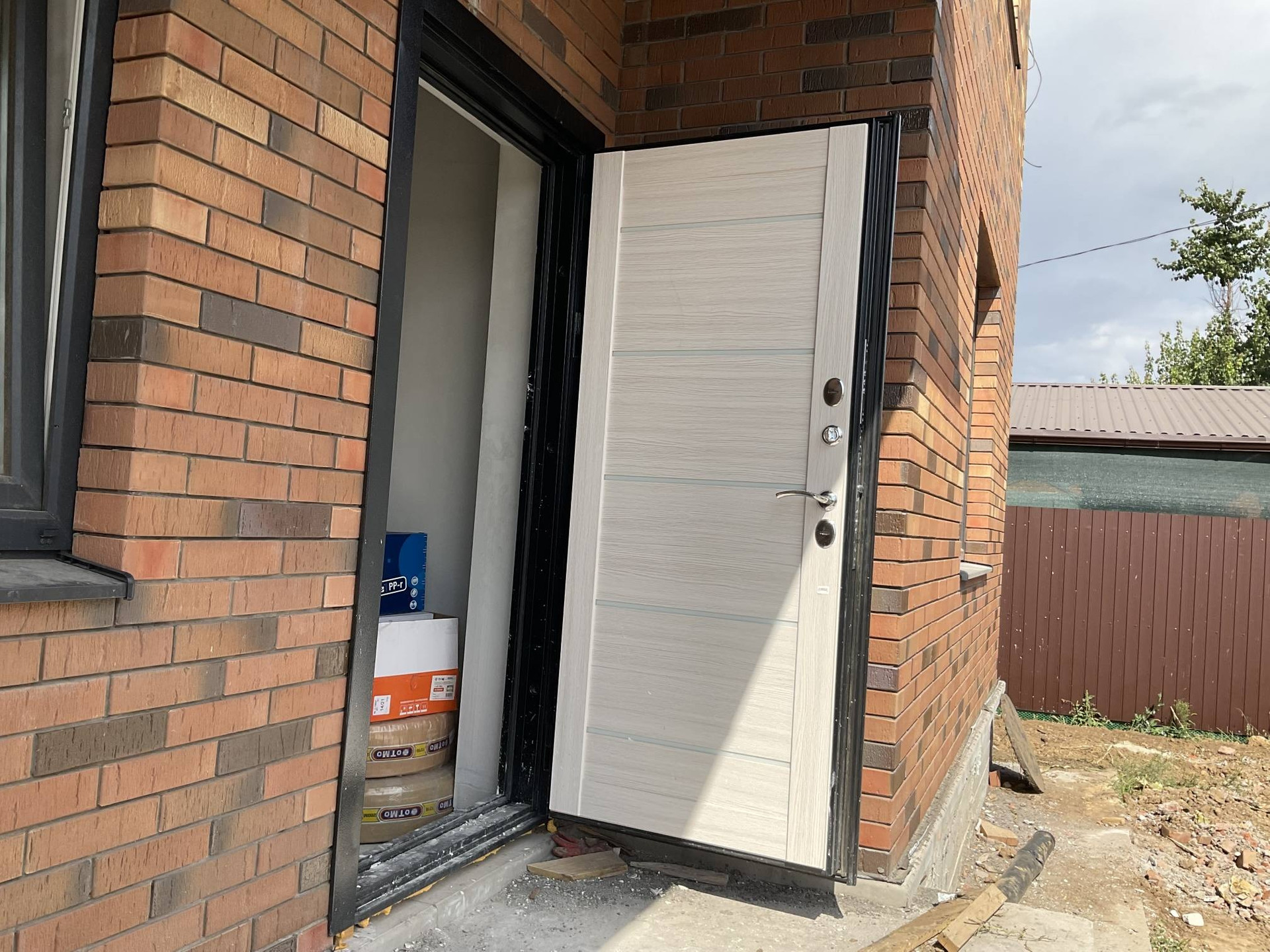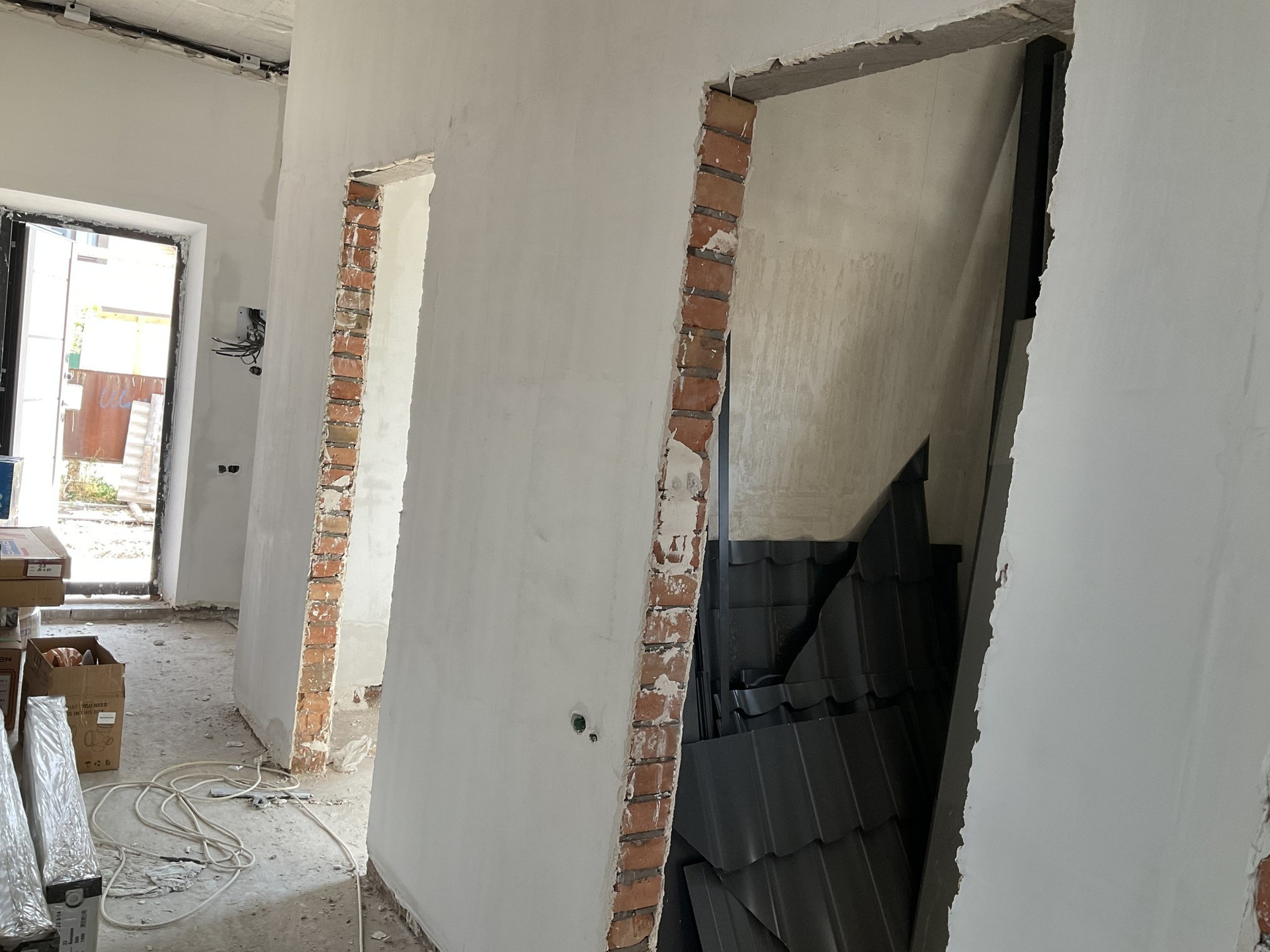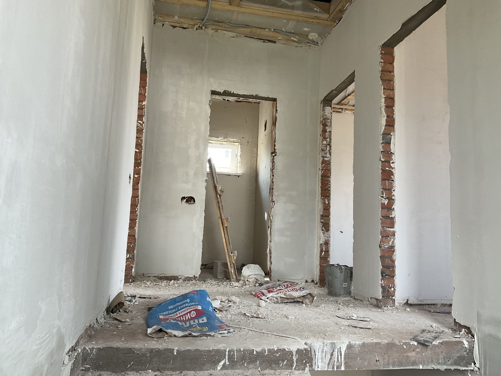 На первом- котельная, прихожая , кухня- гостиная , с/у; второй- 3 спальни -одна большая с гардеробной,с/у.  Утепленная входная дверь, окна rehau. Пол стяжка с утеплителем. Высота потолка 3м. Межкомнатные перегородки -кирпич. Газовое отопление ,вода, канализация двойной септик.
