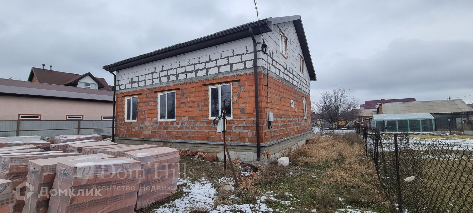 Арт. 51426618 Продажа 2х этажного дома. Стройвариант. Фундамент 2016г. 1этаж выполнен из керамоблока в 2019г. 2этаж - газоблок в 2020г. 1этаж: кухня, гостиная, 2 спальни, санузел, помещение с лестницей на 2 этаж. Газ подведен.