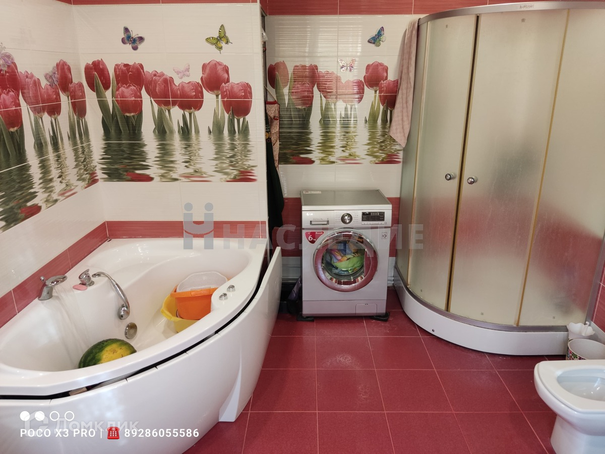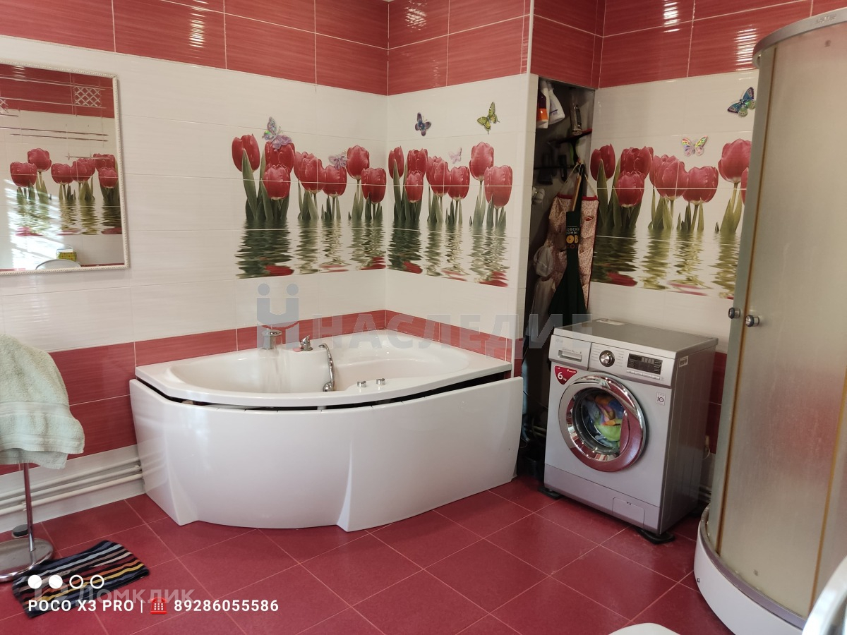 Площадь  газоблочного дома составляет 160 квадратных метров. В доме выполнен ремонт, огромная кухня-гостиная с выходом на задний двор. Два санузла, 5 спален, гардеробная, подвал, баня, просторный участок.  Коммуникации:  газ, свет, центральный водопровод, скважина, интернет, канализация. Участок  площадью 9.3 сот.. На участке расположены  бассейн, мангальная зона. Предусмотрен въезд для автомобиля.