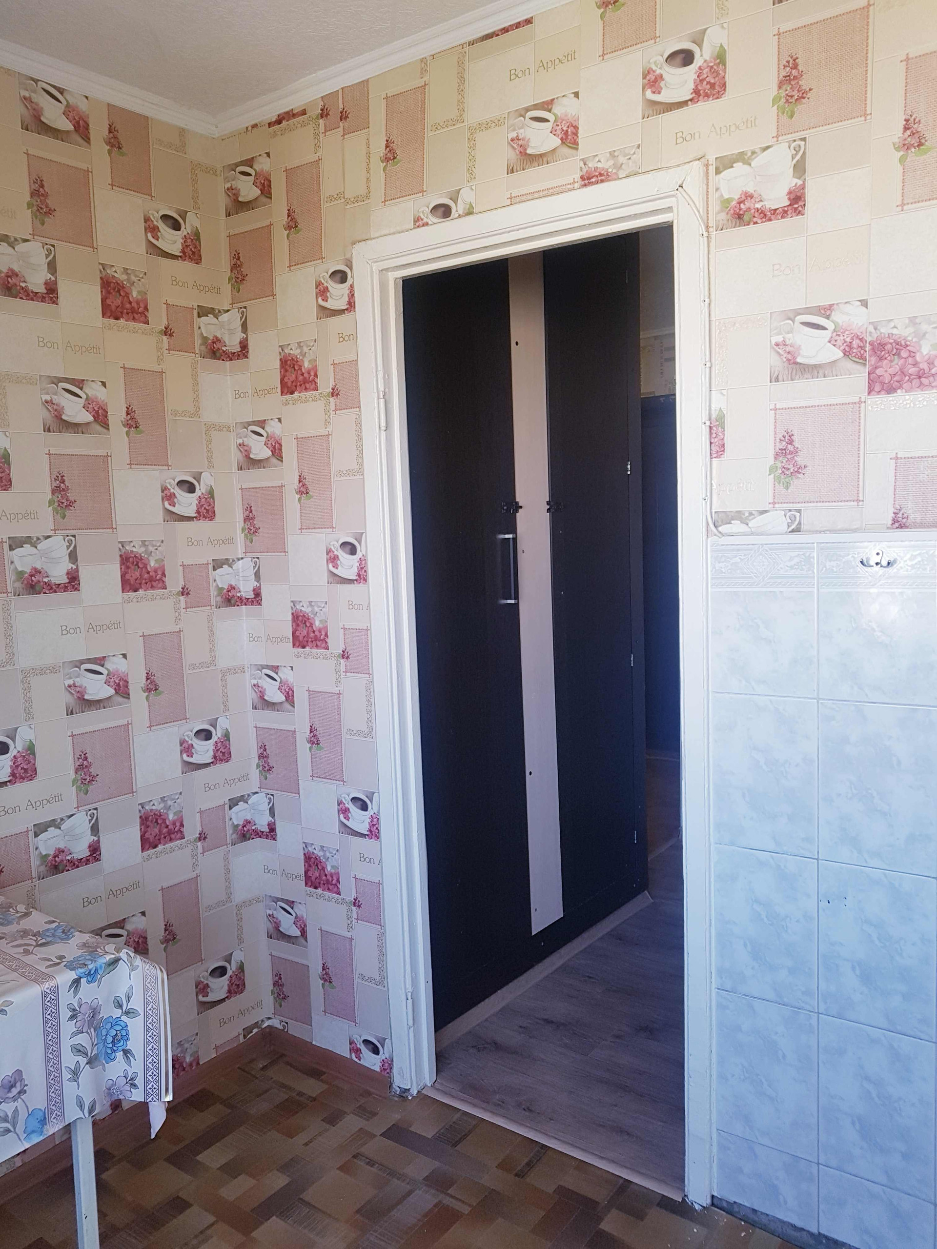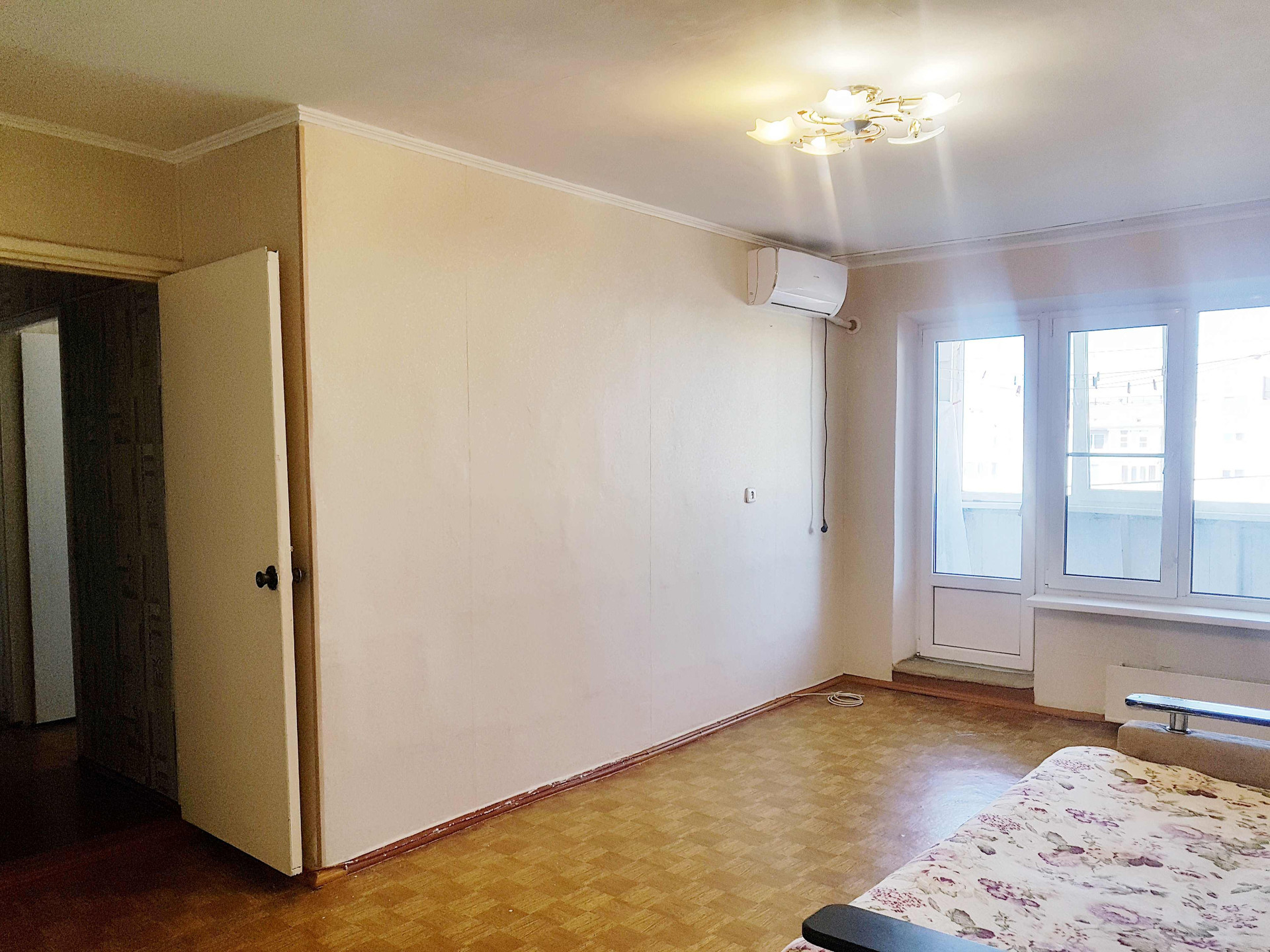 Остаётся кухонный гарнитур и сплит-система, есть встроенные шкафчики и домофон.